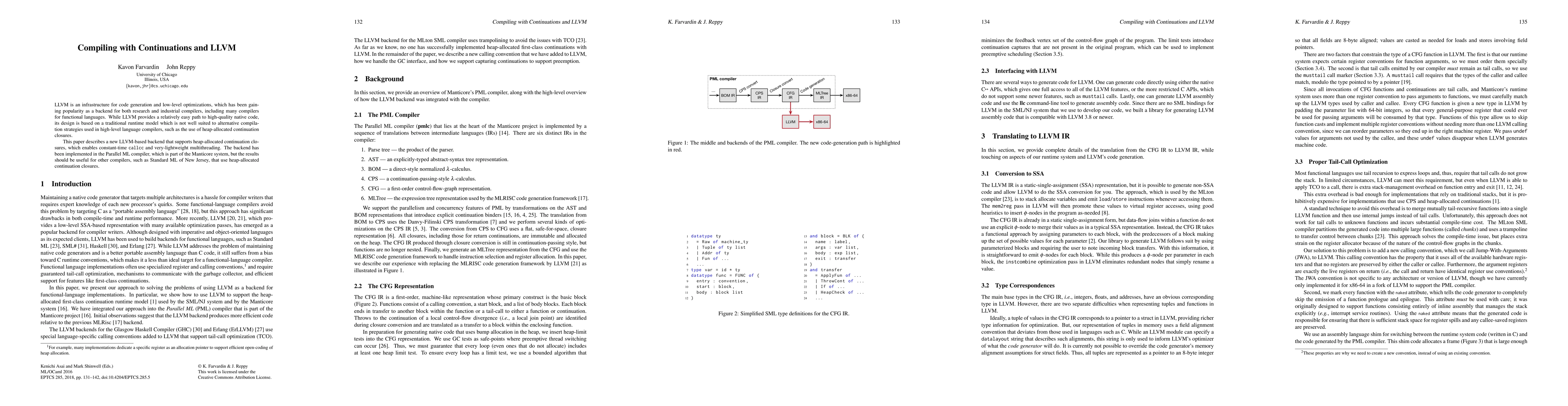 This paper introduces a new LLVM-based backend that supports heap-allocated continuation closures, enabling efficient constant-time callcc and lightweight multithreading, demonstrated through its implementation in the Parallel ML compiler of the Manticore system. The results are expected to benefit other compilers utilizing similar strategies.