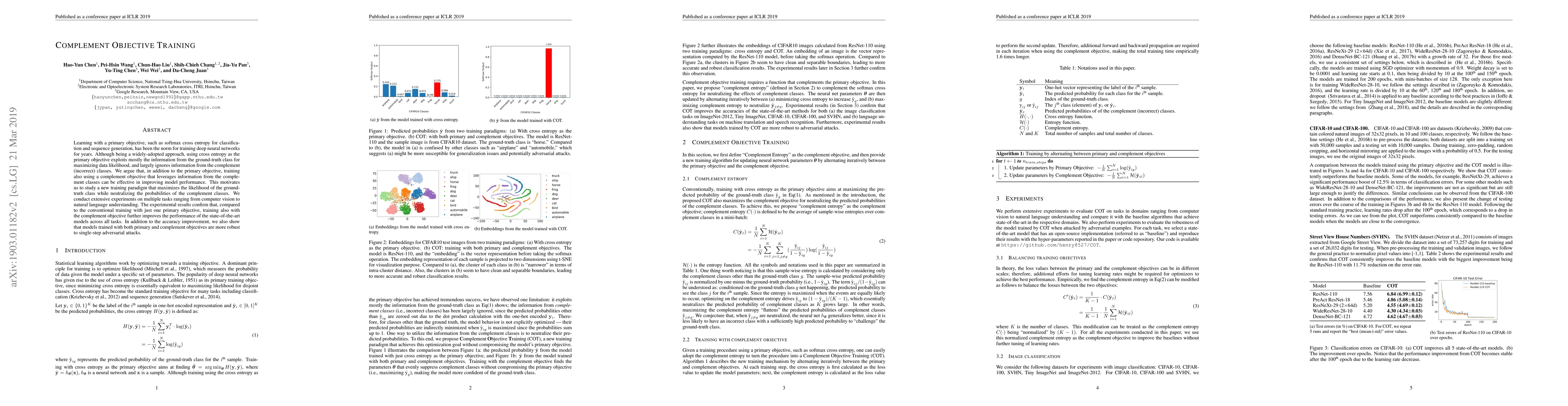 This paper proposes a novel training paradigm that uses both a primary objective (e.g., cross entropy) and a complement objective to leverage information from incorrect classes, demonstrating improved performance and robustness across various tasks compared to traditional single-objective training.