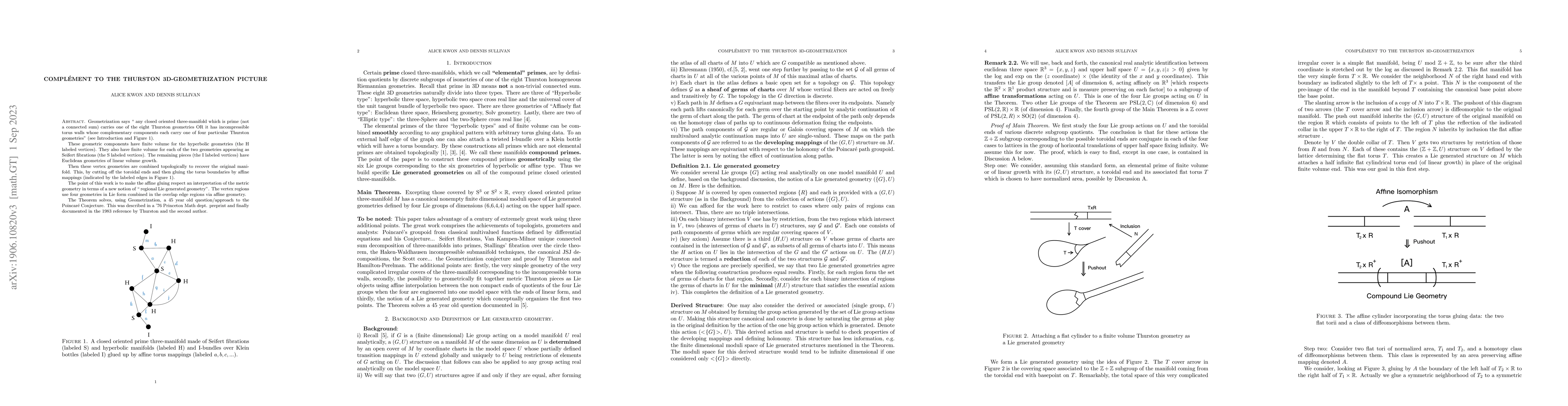 Geometrization says `` any closed oriented three-manifold which is prime (not a connected sum) carries one of the eight Thurston geometries OR it has incompressible torus walls whose complementary components each carry one of four particular Thurston geometries" (see Introduction and Figure 1). These geometric components have finite volume for the hyperbolic geometries (the H labeled vertices). They also have finite volume for each of the two geometries appearing as Seifert fibrations (the S labeled vertices). The remaining pieces (the I labeled vertices) have Euclidean geometries of linear volume growth. Then these vertex geometries are combined topologically to recover the original manifold. This, by cutting off the toroidal ends and then gluing the torus boundaries by affine mappings (indicated by the labeled edges in Figure 1). The point of this work is to make the affine gluing respect an interpretation of the metric geometry in terms of a new notion of `` regional Lie generated geometry". The vertex regions use four geometries in Lie form combined in the overlap edge regions via affine geometry. The Theorem solves, using Geometrization, a 45 year old question/approach to the Poincar\'{e} Conjecture. This was described in a '76 Princeton Math dept. preprint and finally documented in the 1983 reference by Thurston and the second author.