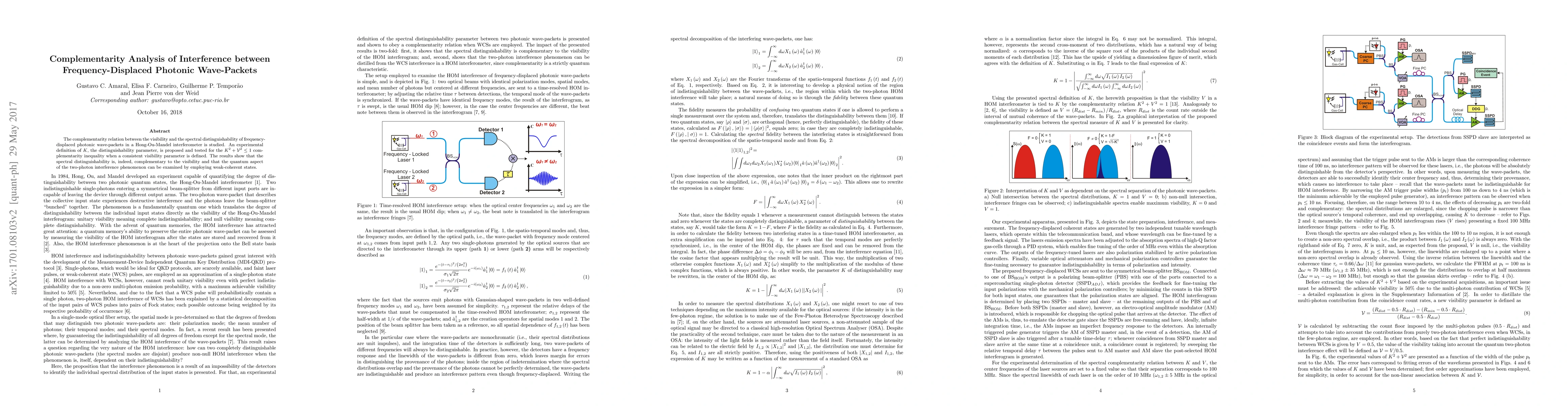 This paper investigates the complementarity between visibility and spectral distinguishability in frequency-displaced photonic wave-packets using a Hong-Ou-Mandel interferometer. The study proposes and tests a new parameter $K$ for distinguishability, confirming the $K^2+\mathcal{V}^2\leq 1$ inequality and demonstrating the quantum nature of two-photon interference with weak-coherent states.