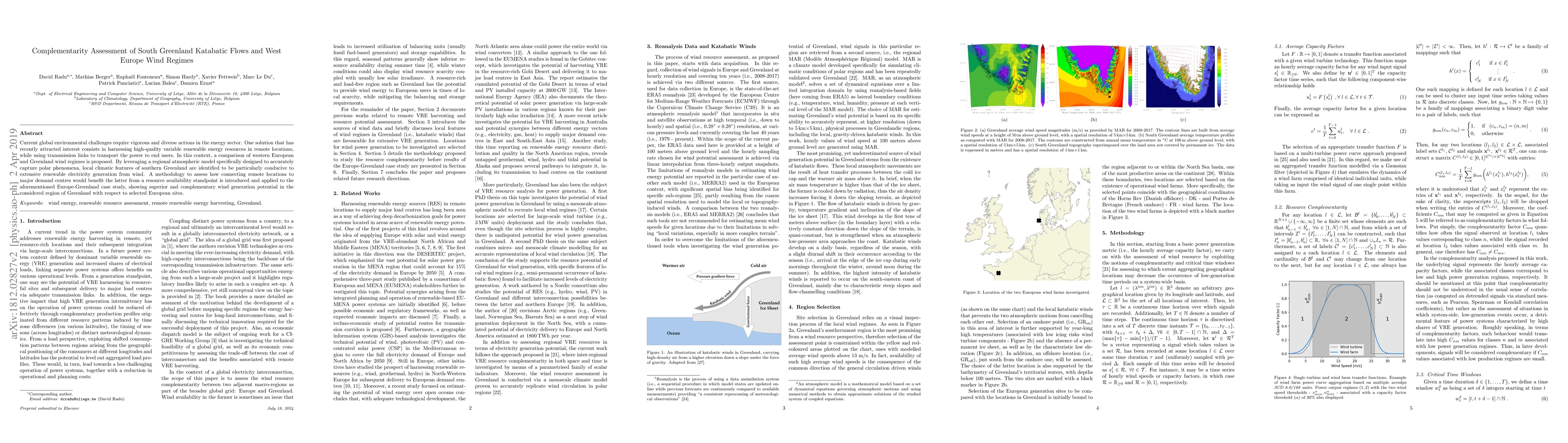 Current global environmental challenges require vigorous and diverse actions in the energy sector. One solution that has recently attracted interest consists in harnessing high-quality variable renewable energy resources in remote locations, while using transmission links to transport the power to end users. In this context, a comparison of western European and Greenland wind regimes is proposed. By leveraging a regional atmospheric model specifically designed to accurately capture polar phenomena, local climatic features of southern Greenland are identified to be particularly conducive to extensive renewable electricity generation from wind. A methodology to assess how connecting remote locations to major demand centres would benefit the latter from a resource availability standpoint is introduced and applied to the aforementioned Europe-Greenland case study, showing superior and complementary wind generation potential in the considered region of Greenland with respect to selected European sites.