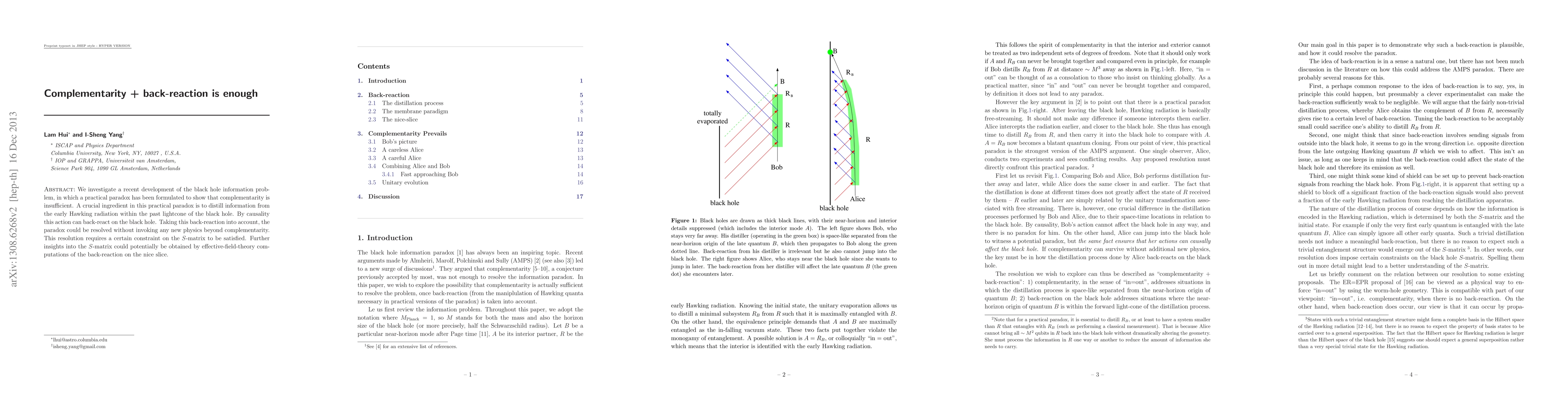 This paper resolves a paradox regarding the black hole information problem by demonstrating that accounting for back-reaction from distilling early Hawking radiation within the black hole's past lightcone, alongside complementarity, suffices without requiring new physics. This resolution hinges on a specific constraint on the S-matrix, which may be further explored through effective-field-theory computations.
