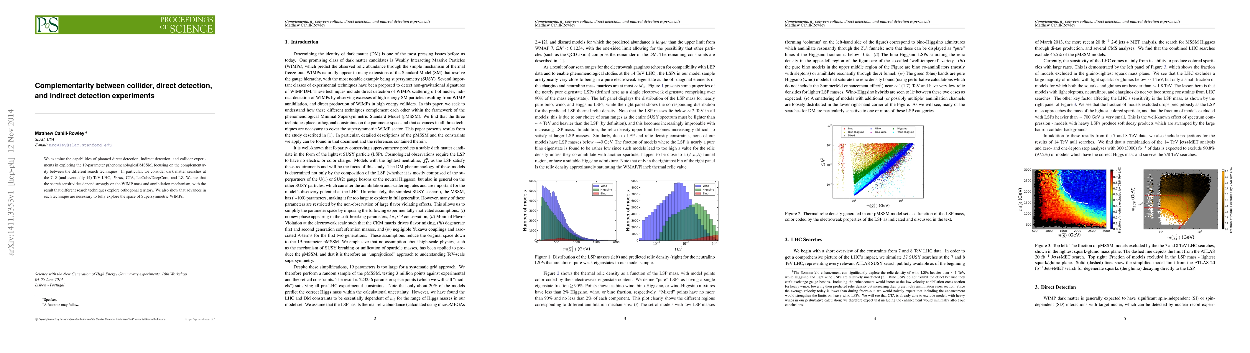 This paper investigates the complementary roles of collider, direct detection, and indirect detection experiments in exploring the p(henomenological)MSSM, emphasizing how different search techniques cover distinct regions of parameter space based on WIMP mass and annihilation mechanisms. It concludes that advancements in all techniques are essential for a comprehensive exploration of Supersymmetric WIMPs.