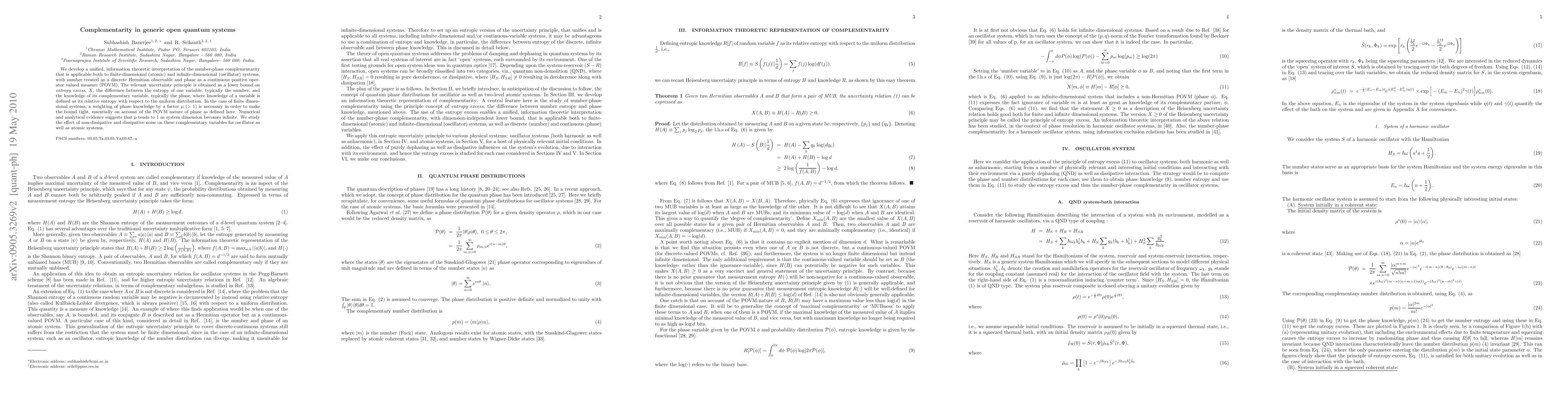 This paper presents an information-theoretic interpretation of number-phase complementarity in both finite and infinite-dimensional quantum systems, deriving a generalized uncertainty principle based on entropy excess. The study also examines the impact of noise on these complementary variables in both atomic and oscillator systems.