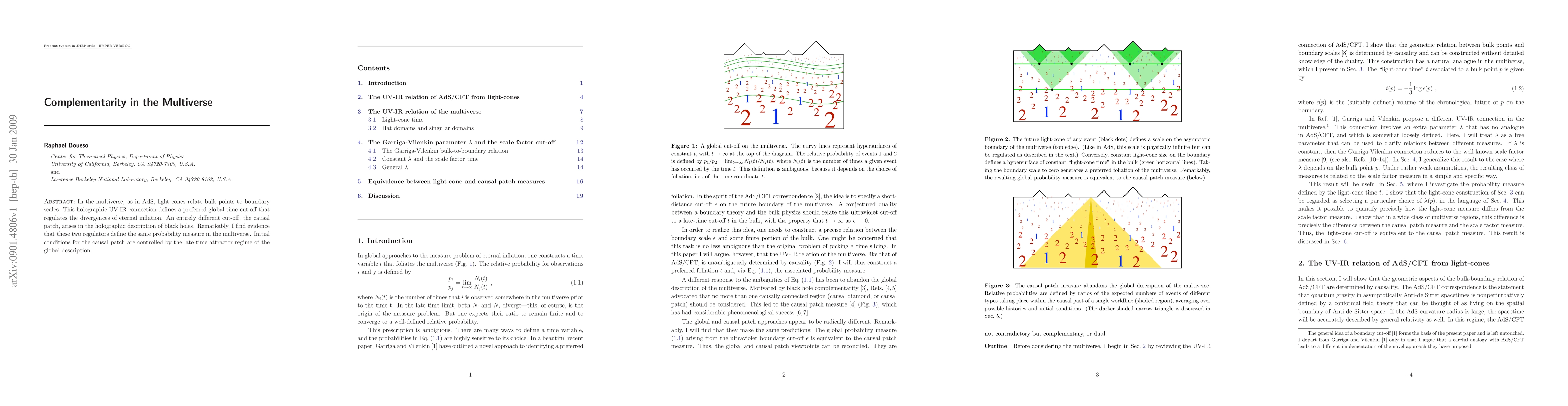 In the multiverse, as in AdS, light-cones relate bulk points to boundary scales. This holographic UV-IR connection defines a preferred global time cut-off that regulates the divergences of eternal inflation. An entirely different cut-off, the causal patch, arises in the holographic description of black holes. Remarkably, I find evidence that these two regulators define the same probability measure in the multiverse. Initial conditions for the causal patch are controlled by the late-time attractor regime of the global description.
