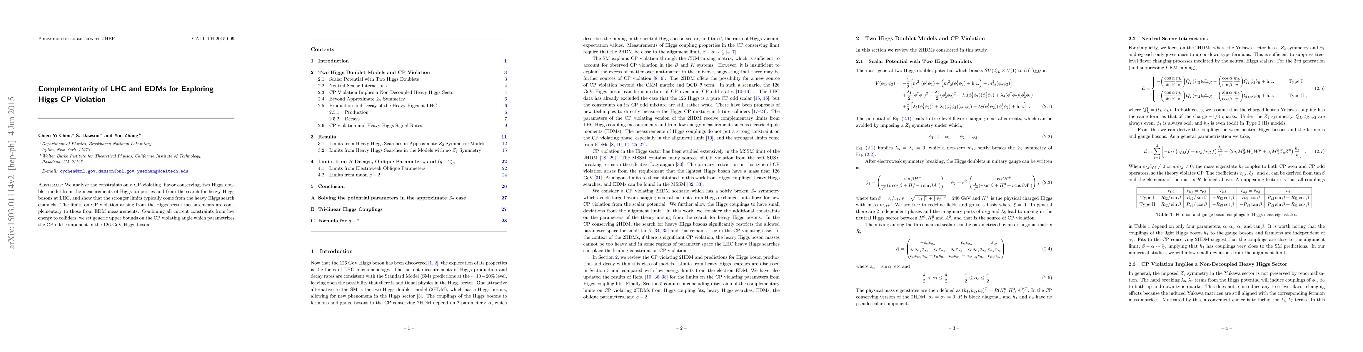 This paper examines the complementary roles of the LHC and electric dipole moment (EDM) measurements in constraining CP violation in a two Higgs doublet model. It finds that while LHC searches for heavy Higgs bosons provide stronger constraints, EDM measurements offer complementary insights, leading to combined upper bounds on the CP violating angle in the 126 GeV Higgs boson.