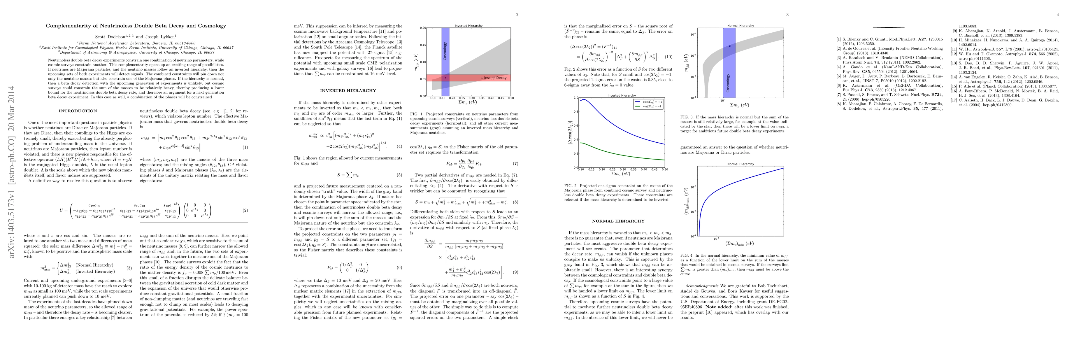 Neutrinoless double beta decay experiments constrain one combination of neutrino parameters, while cosmic surveys constrain another. This complementarity opens up an exciting range of possibilities. If neutrinos are Majorana particles, and the neutrino masses follow an inverted hierarchy, then the upcoming sets of both experiments will detect signals. The combined constraints will pin down not only the neutrino masses but also constrain one of the Majorana phases. If the hierarchy is normal, then a beta decay detection with the upcoming generation of experiments is unlikely, but cosmic surveys could constrain the sum of the masses to be relatively heavy, thereby producing a lower bound for the neutrinoless double beta decay rate, and therefore an argument for a next generation beta decay experiment. In this case as well, a combination of the phases will be constrained.