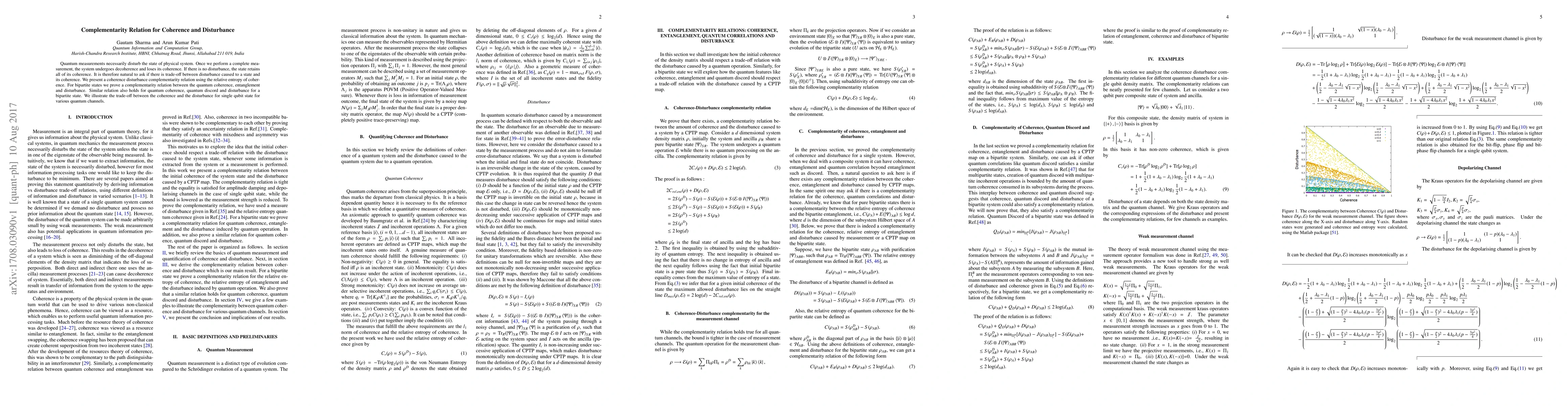 This paper establishes a complementarity relation between coherence and disturbance in quantum measurements, demonstrating that complete measurement leads to decoherence and disturbance. It proves a trade-off relationship using relative entropy of coherence, showing a connection between coherence, entanglement, and disturbance for bipartite states.