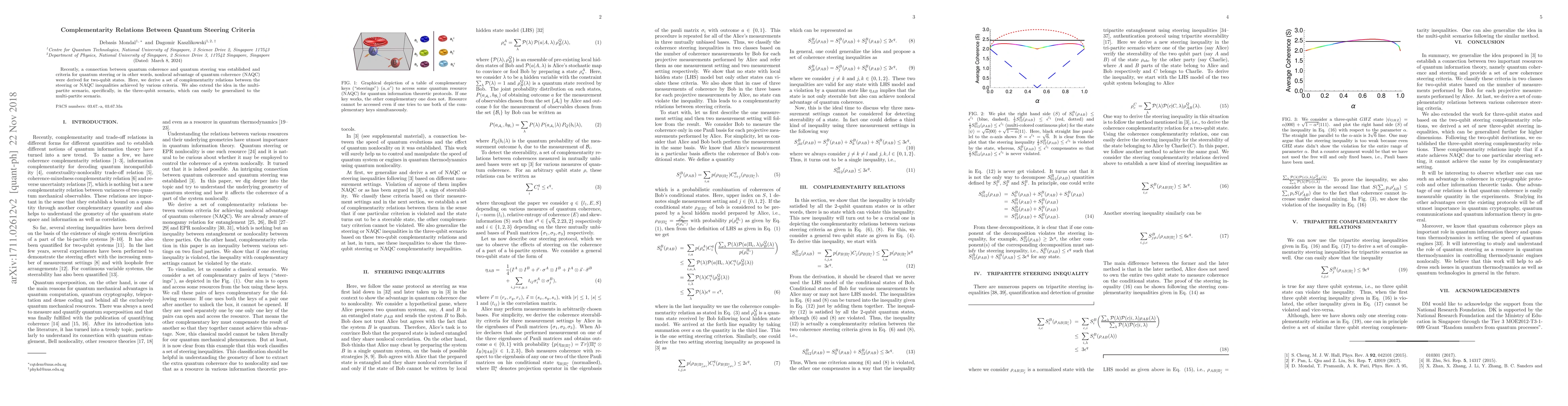 This paper establishes complementarity relations between different quantum steering criteria, specifically for two-qubit states, and extends the findings to a three-qubit scenario, with potential generalization to multi-partite systems. The study highlights the nonlocal advantage of quantum coherence in steering.