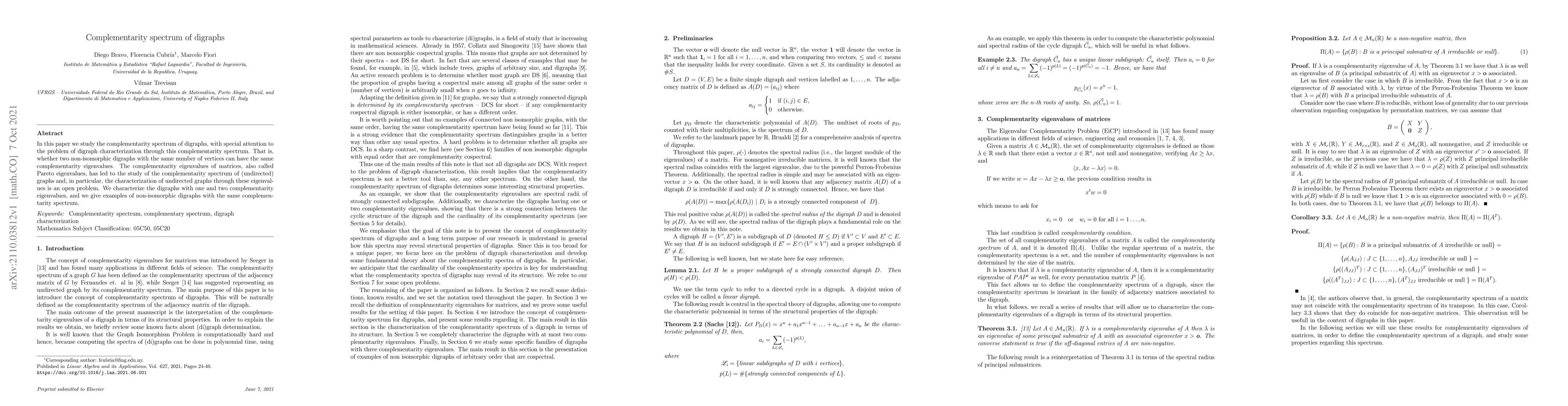 This paper explores the complementarity spectrum of directed graphs (digraphs), focusing on whether non-isomorphic digraphs can share the same set of complementarity eigenvalues, akin to an open problem in undirected graphs. The authors characterize digraphs with one or two complementarity eigenvalues and provide examples of non-isomorphic digraphs with identical complementarity spectra.
