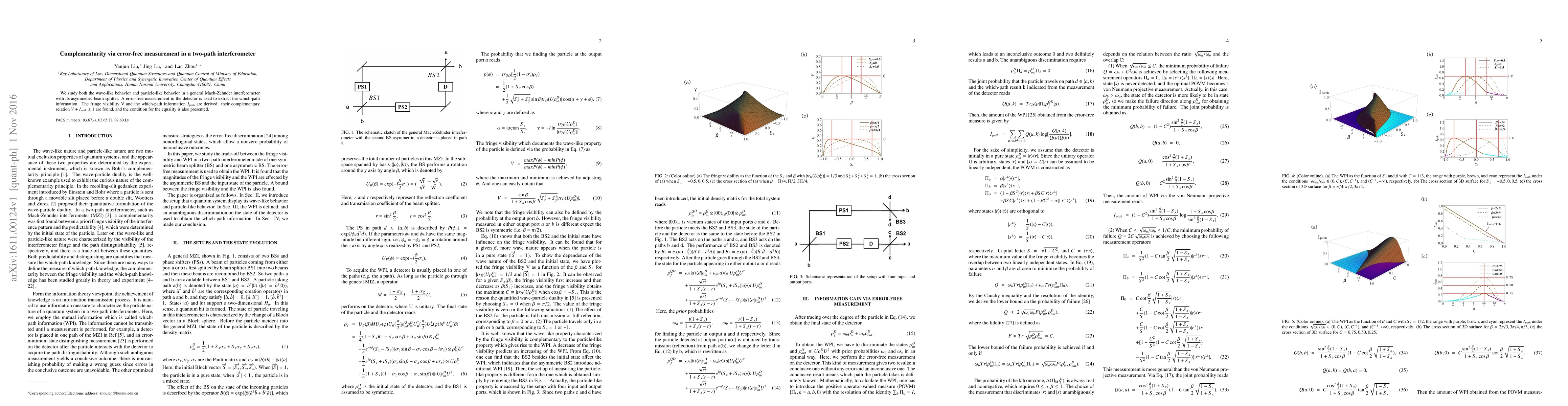 This paper explores the wave-particle duality in a Mach-Zehnder interferometer using an error-free measurement to obtain which-path information, revealing a complementary relationship between fringe visibility and which-path information, with their sum constrained to be less than or equal to 1. The conditions for achieving this equality are also detailed.