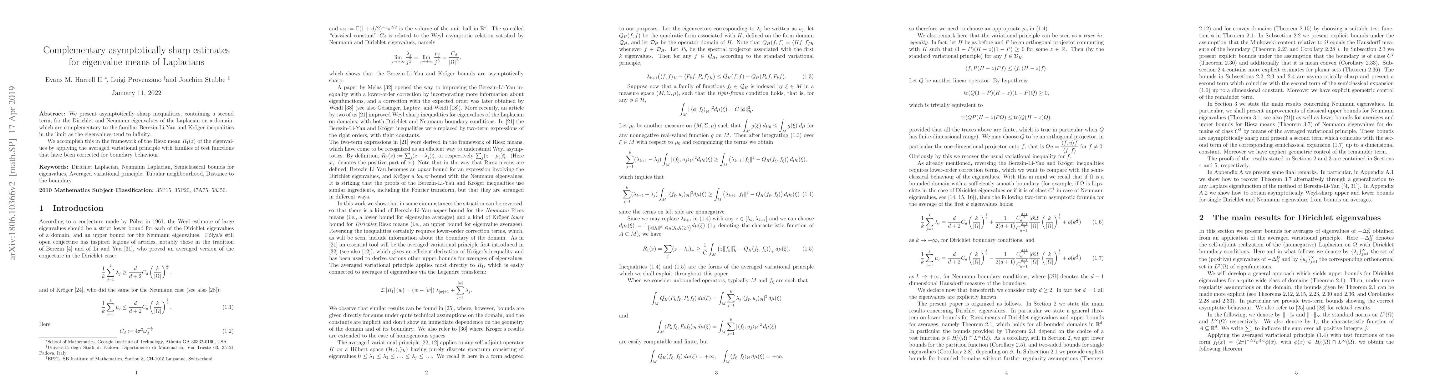 We present asymptotically sharp inequalities, containing a second term, for the Dirichlet and Neumann eigenvalues of the Laplacian on a domain, which are complementary to the familiar Berezin-Li-Yau and Kr\"oger inequalities in the limit as the eigenvalues tend to infinity. We accomplish this in the framework of the Riesz mean $R_1(z)$ of the eigenvalues by applying the averaged variational principle with families of test functions that have been corrected for boundary behaviour.