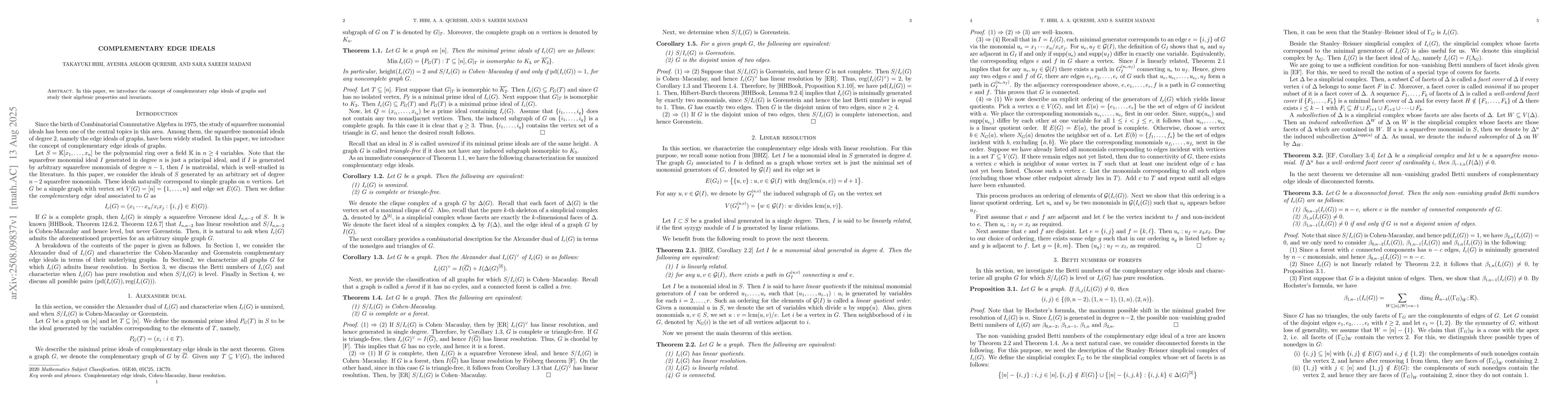In this paper, we introduce the concept of complementary edge ideals of graphs and study their algebraic properties and invariants.