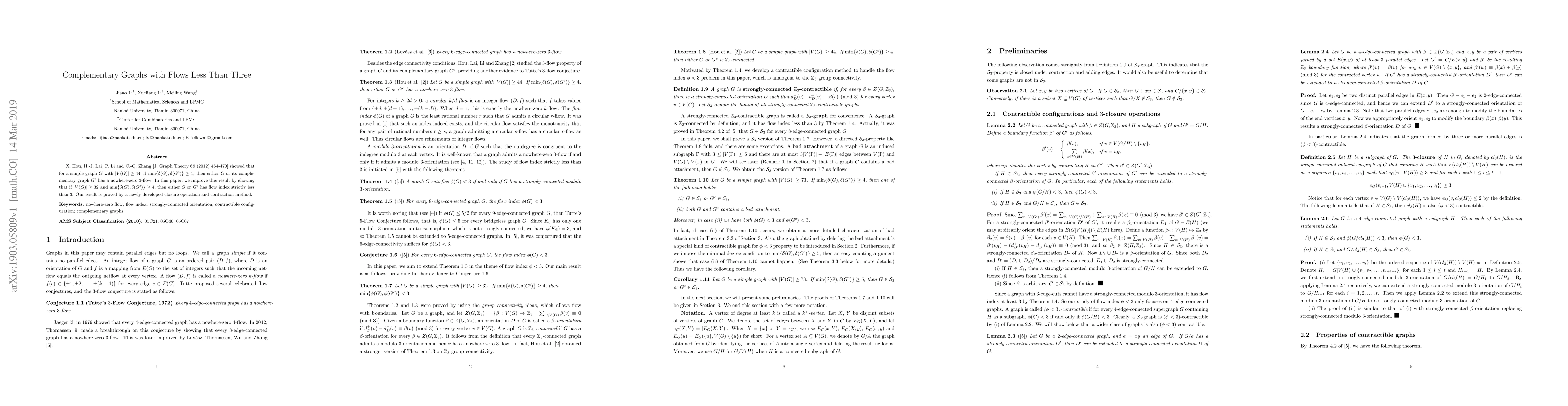 X. Hou, H.-J. Lai, P. Li and C.-Q. Zhang [J. Graph Theory 69 (2012) 464-470] showed that for a simple graph $G$ with $|V(G)|\ge 44$, if $\min\{\delta(G),\delta(G^c)\}\ge 4$, then either $G$ or its complementary graph $G^c$ has a nowhere-zero $3$-flow. In this paper, we improve this result by showing that if $|V(G)|\ge 32$ and $\min\{\delta(G),\delta(G^c)\}\ge 4$, then either $G$ or $G^c$ has flow index strictly less than $3$. Our result is proved by a newly developed closure operation and contraction method.