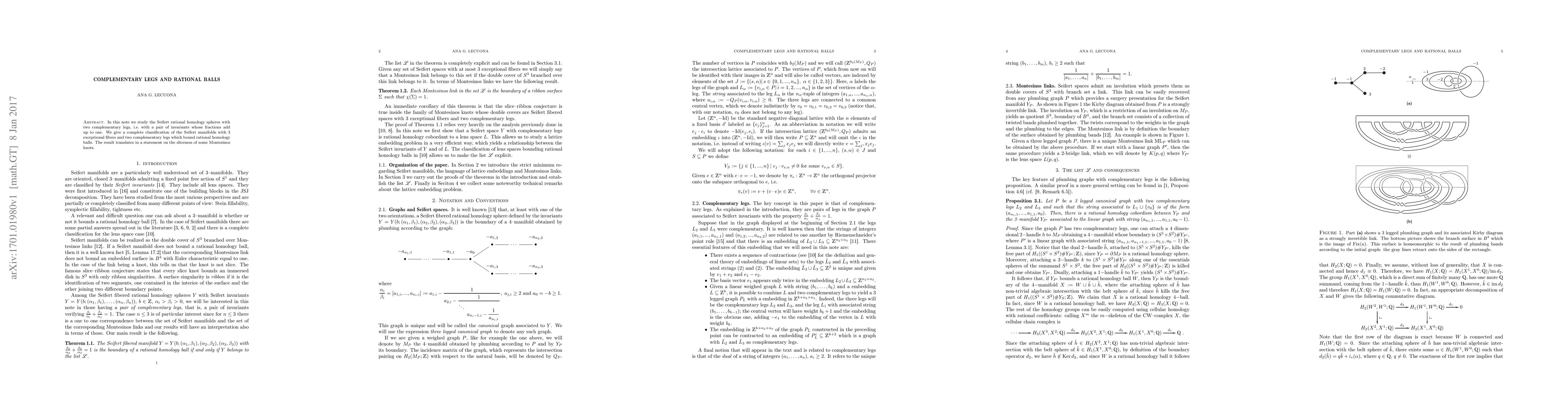 In this note we study the Seifert rational homology spheres with two complementary legs, i.e. with a pair of invariants whose fractions add up to one. We give a complete classification of the Seifert manifolds with 3 exceptional fibers and two complementary legs which bound rational homology balls. The result translates in a statement on the sliceness of some Montesinos knots.