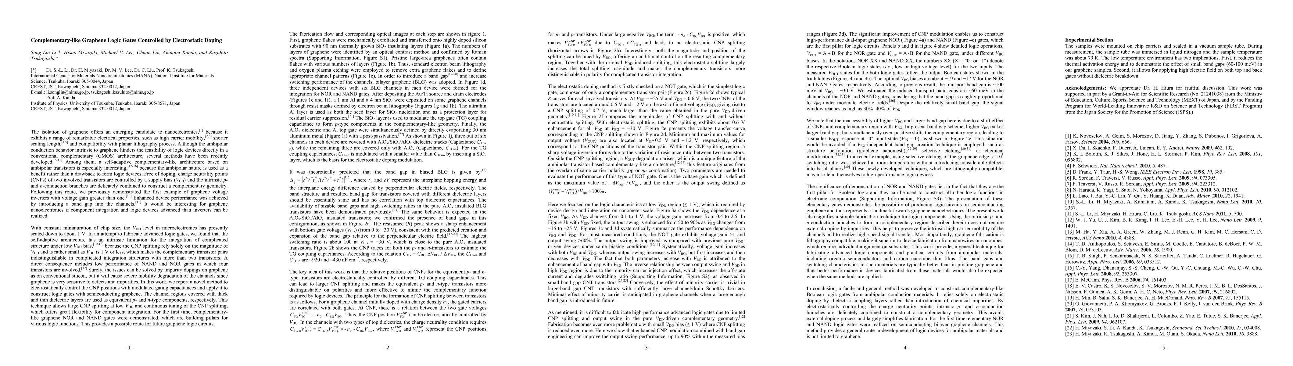 This paper presents a method to create complementary-like graphene logic gates using electrostatic doping to control charge neutrality points, leveraging ambipolar conduction to construct NOR and NAND logic gates. The approach introduces a band gap to enhance switching ratios, offering a potential route for high-speed nanoelectronics.