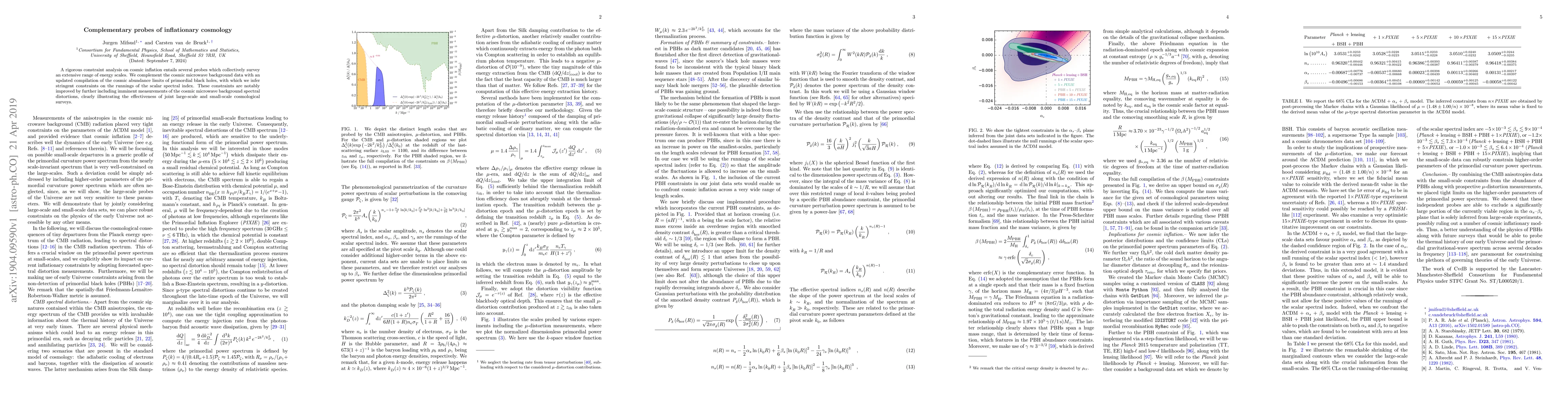A rigorous constraint analysis on cosmic inflation entails several probes which collectively survey an extensive range of energy scales. We complement the cosmic microwave background data with an updated compilation of the cosmic abundance limits of primordial black holes, with which we infer stringent constraints on the runnings of the scalar spectral index. These constraints are notably improved by further including imminent measurements of the cosmic microwave background spectral distortions, clearly illustrating the effectiveness of joint large-scale and small-scale cosmological surveys.