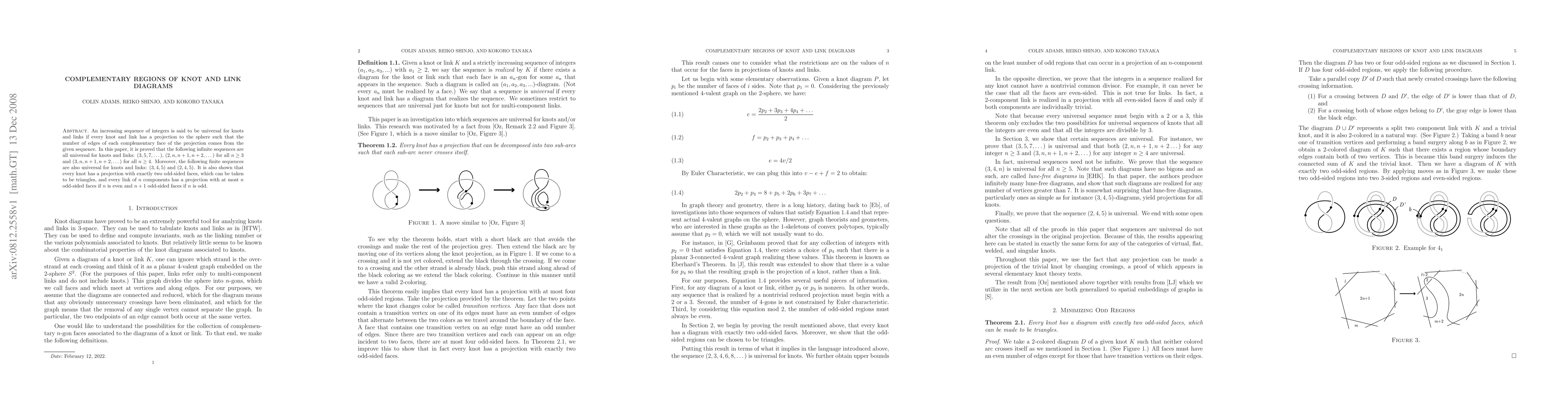 An increasing sequence of integers is said to be universal for knots and links if every knot and link has a projection to the sphere such that the number of edges of each complementary face of the projection comes from the given sequence. This paper is an investigation into which sequences, either finite or infinite, are universal. We also consider how to minimize the number of odd-sided faces for projections of knots and links with n components.