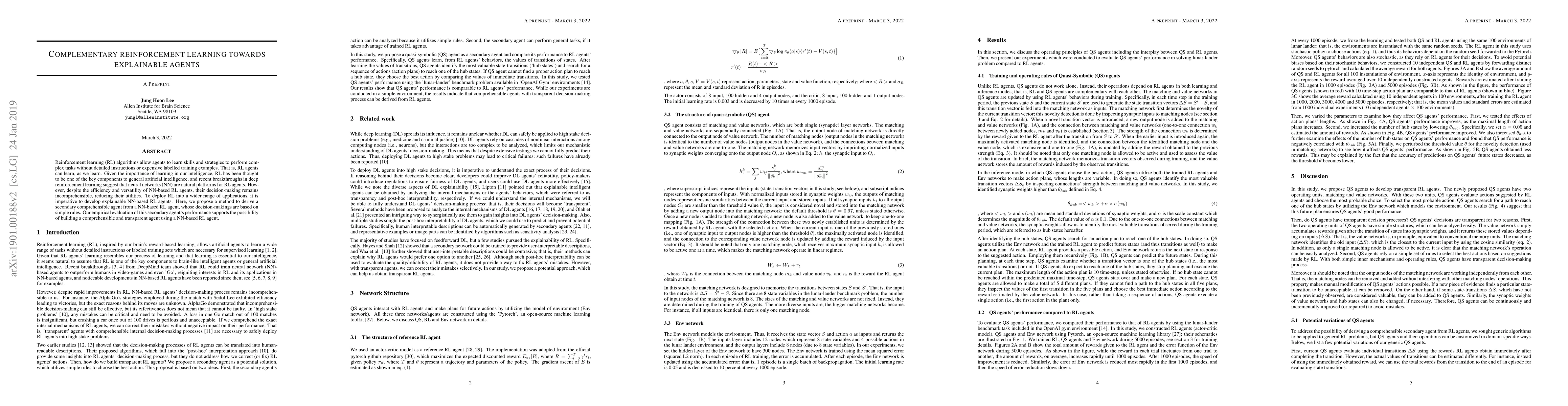 This paper proposes a method to create a secondary, explainable agent from a neural network-based reinforcement learning (RL) agent, aiming to enhance transparency and comprehensibility. Empirical results suggest the potential for developing understandable RL agents that can perform complex tasks.
