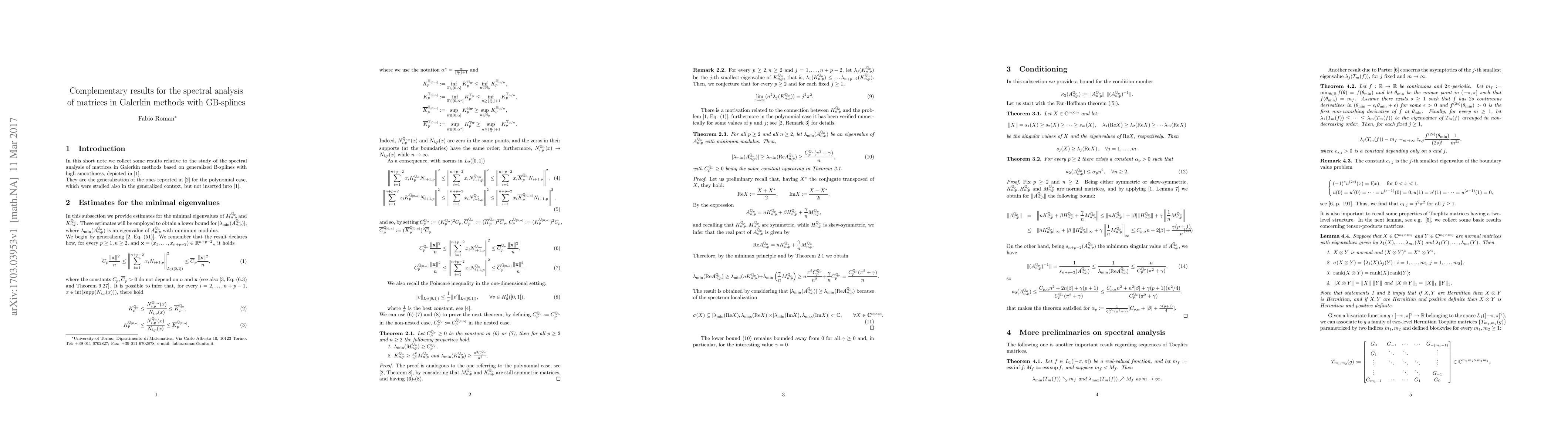 Summary: The paper presents novel findings regarding the spectral analysis of matrices in Galerkin methods utilizing high-smoothness generalized B-splines. These results enhance the understanding of matrix behavior in such numerical methods.