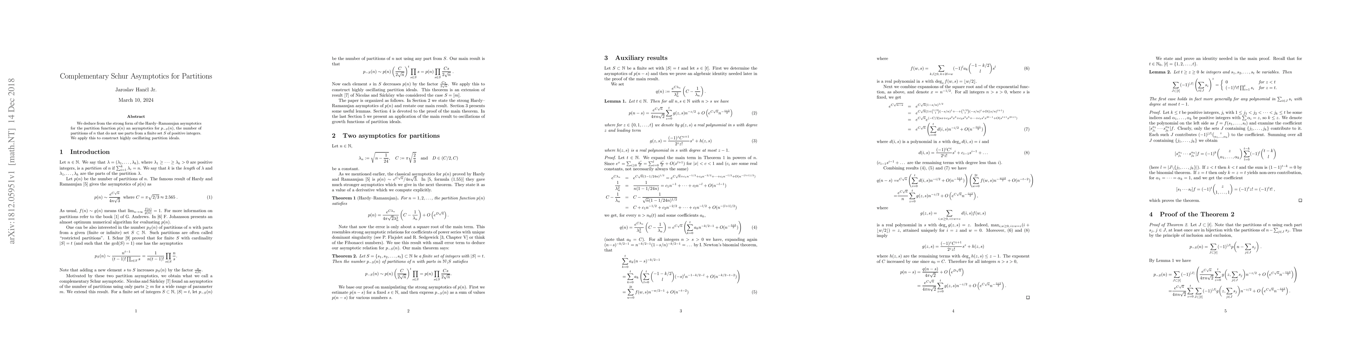 We deduce from the strong form of the Hardy--Ramanujan asymptotics for the partition function $p(n)$ an asymptotics for $p_{-S}(n)$, the number of partitions of $n$ that do not use parts from a finite set $S$ of positive integers. We apply this to construct highly oscillating partition ideals.