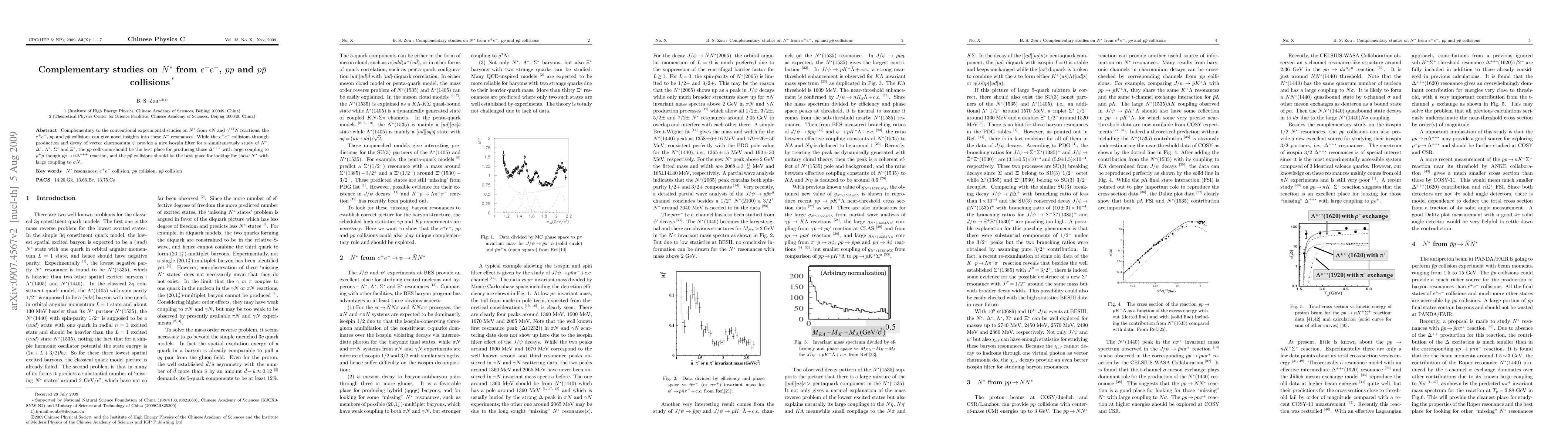 Complementary to the conventional experimental studies on $N^*$ from $\pi N$ and $\gamma^{(*)}N$ reactions, the $e^+e^-$, $pp$ and $p\bar p$ collisions can give novel insights into these $N^*$ resonances. While the $e^+e^-$ collisions through production and decay of vector charmonium $\psi$ provide a nice isospin filter for a simultaneously study of $N^*$, $\Delta^*$, $\Lambda^*$, $\Sigma^*$ and $\Xi^*$, the $pp$ collisions should be the best place for producing those $\Delta^{*++}$ with large coupling to $\rho^+p$ though $pp\to n\Delta^{*++}$ reaction, and the $p\bar p$ collisions should be the best place for looking for those $N^*$ with large coupling to $\sigma N$.