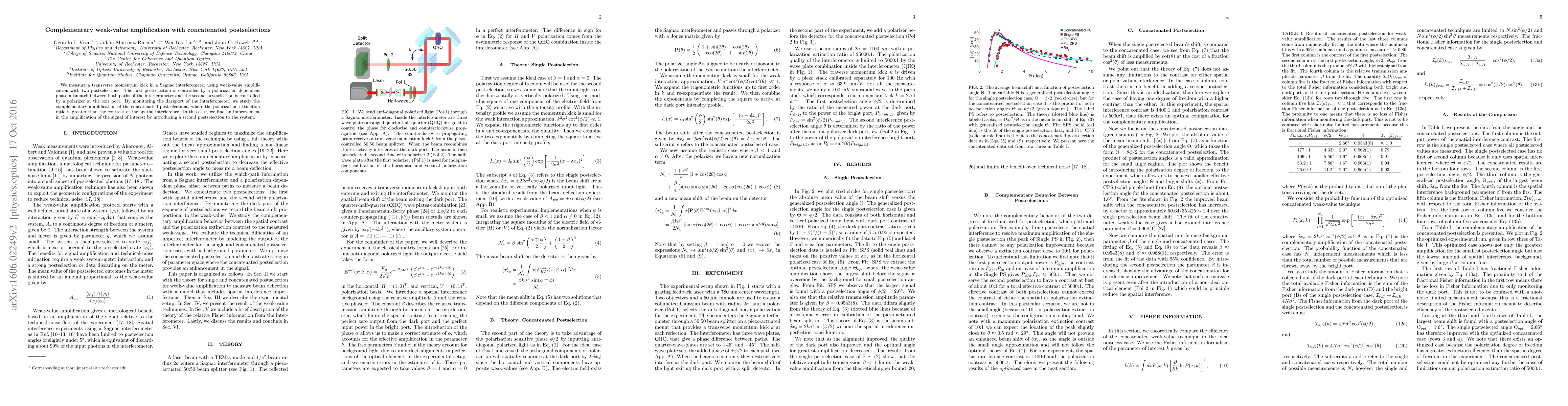 We measure a transverse momentum kick in a Sagnac interferometer using weak-value amplification with two postselections. The first postselection is controlled by a polarization dependent phase mismatch between both paths of a Sagnac interferometer and the second postselection is controlled by a polarizer at the exit port. By monitoring the darkport of the interferometer, we study the complementary amplification of the concatenated postselections, where the polarization extinction ratio is greater than the contrast of the spatial interference. In this case, we find an improvement in the amplification of the signal of interest by introducing a second postselection to the system.