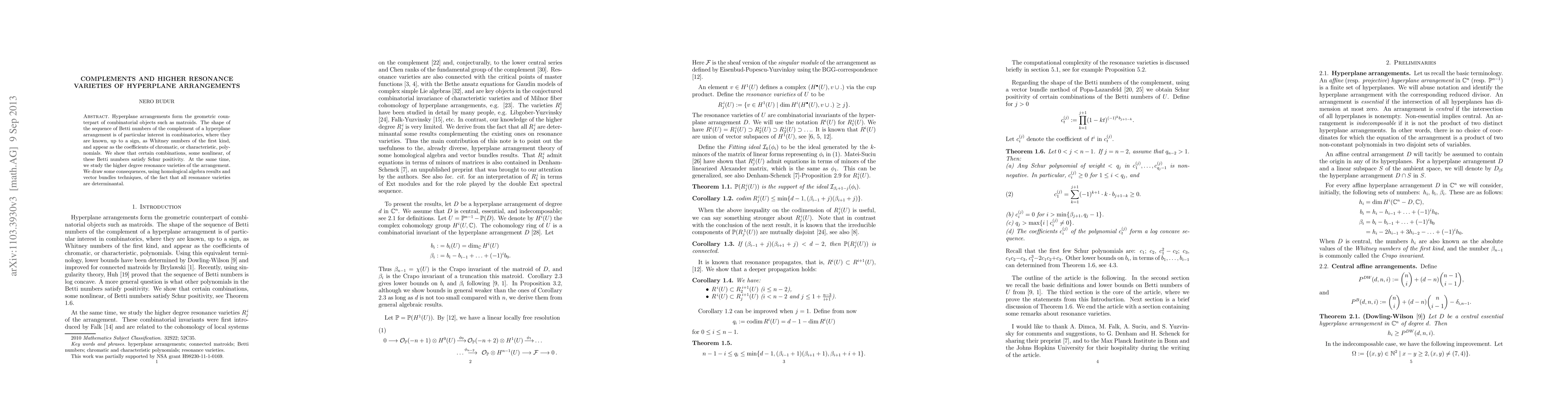 Researchers study hyperplane arrangements, finding that certain combinations of Betti numbers satisfy Schur positivity and showing that higher resonance varieties are determinantal, with implications for combinatorics and algebra.