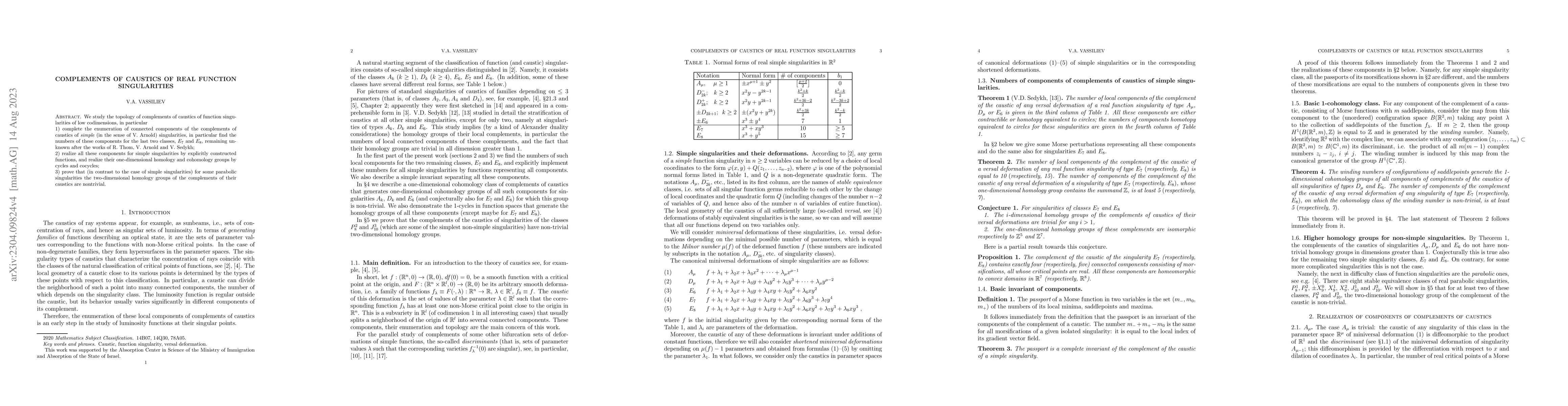 This paper enumerates the connected components of the complements of caustics for simple singularities, including the previously unknown $E_7$ and $E_8$ classes, and constructs explicit functions to realize these components and their homology groups. It also reveals that for certain parabolic singularities, the two-dimensional homology groups of their caustic complements are nontrivial.