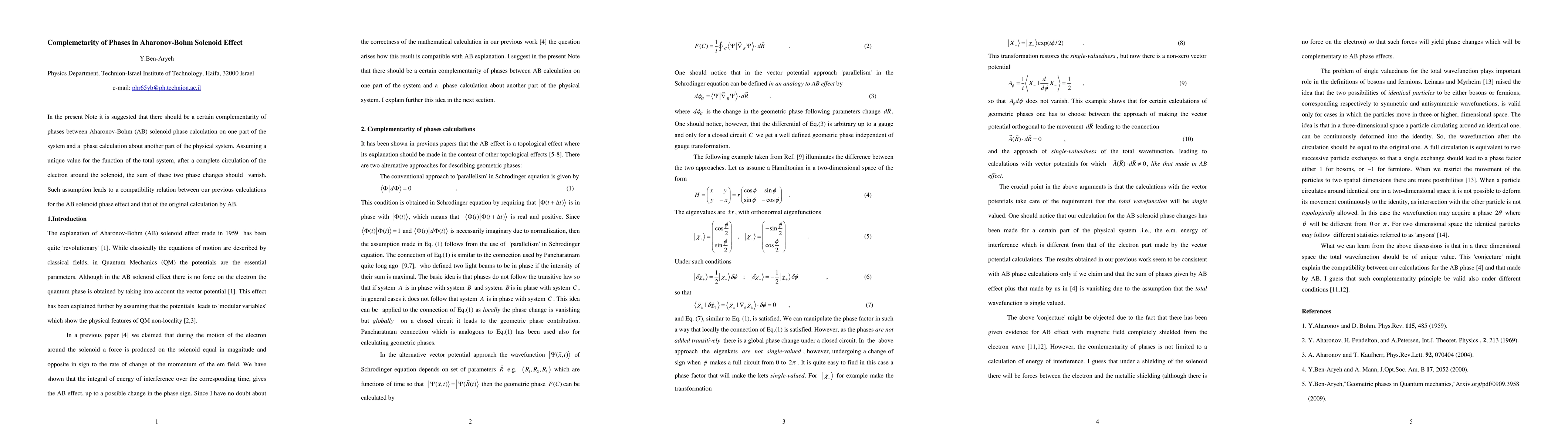 This paper proposes a complementarity of phases in the Aharonov-Bohm effect, suggesting that the phase changes around different parts of a system involving a solenoid should sum to zero after a complete electron circulation, establishing a compatibility between prior AB phase calculations.