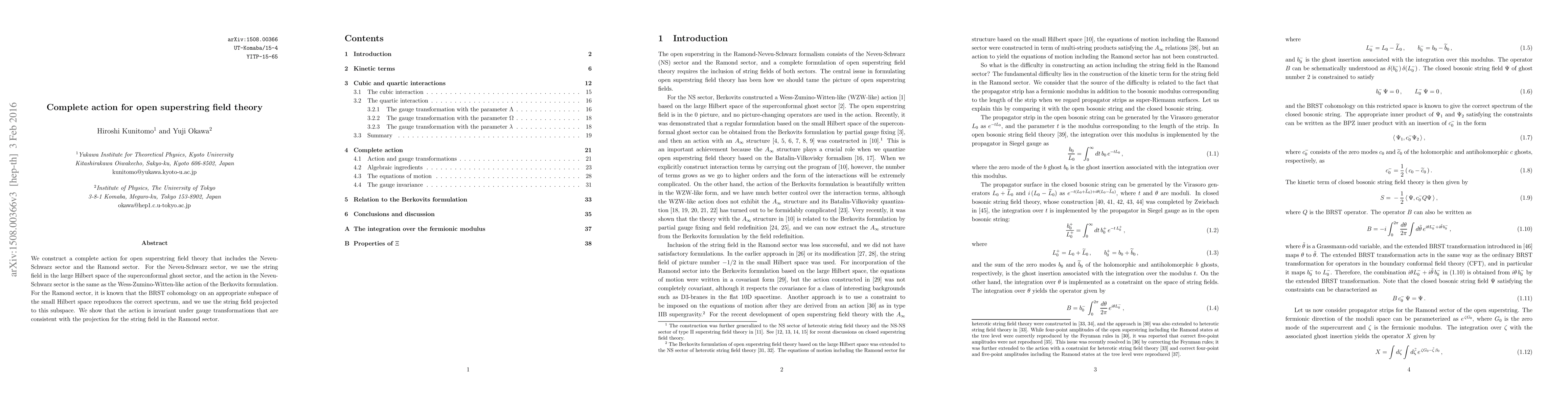 This paper constructs a complete action for open superstring field theory incorporating both the Neveu-Schwarz and Ramond sectors. It utilizes the Berkovits formulation for the Neveu-Schwarz sector and a projected string field for the Ramond sector, demonstrating invariance under consistent gauge transformations.