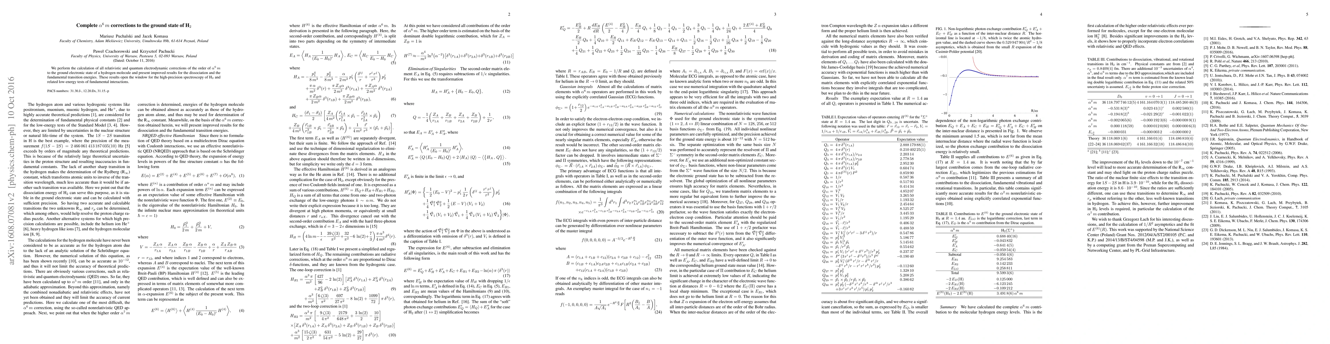 We perform the calculation of all relativistic and quantum electrodynamic corrections of the order of $\alpha^6\,m$ to the ground electronic state of a hydrogen molecule and present improved results for the dissociation and the fundamental transitions energies. These results open the window for the high-precision spectroscopy of H$_2$ and related low-energy tests of fundamental interactions.