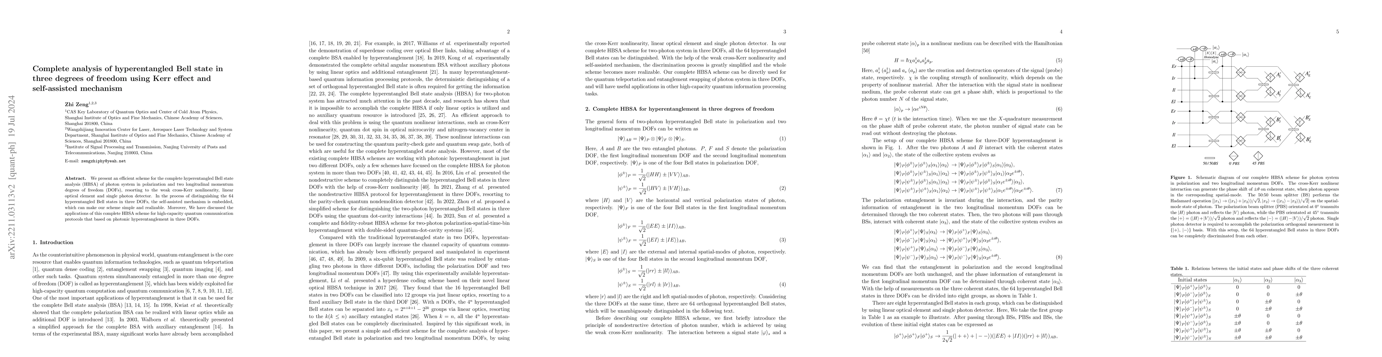 This paper proposes an efficient scheme for analyzing hyperentangled Bell states in three degrees of freedom using weak cross-Kerr nonlinearity and a self-assisted mechanism. The scheme simplifies the identification of 64 hyperentangled Bell states and is applied to quantum teleportation based on hyperentangled states.