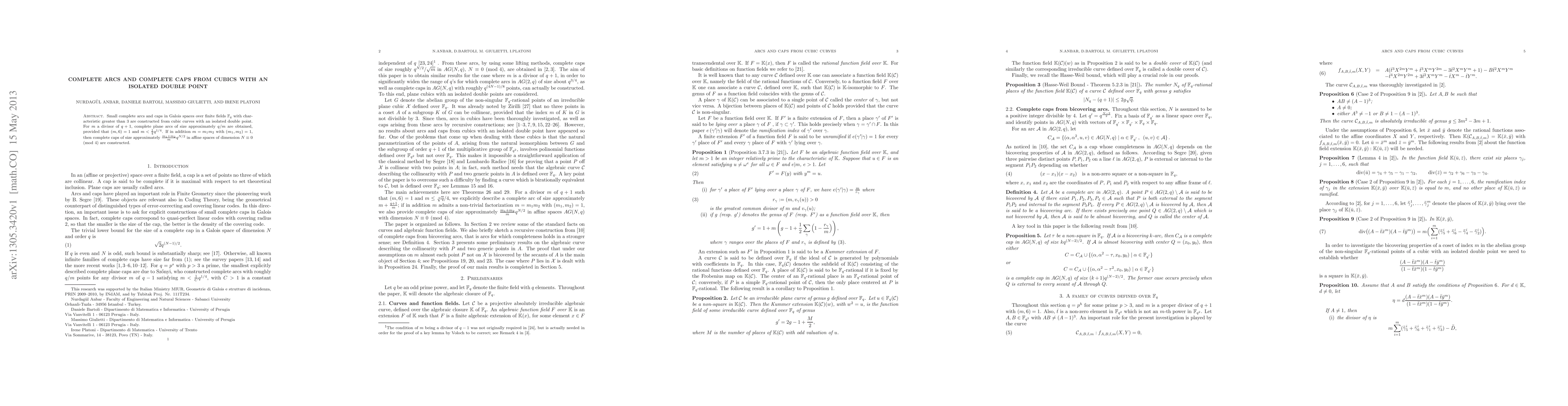 Researchers construct small complete arcs and caps in Galois spaces over finite fields using cubic curves with an isolated double point. These constructions provide approximations for plane arcs and caps of specific sizes under certain conditions.