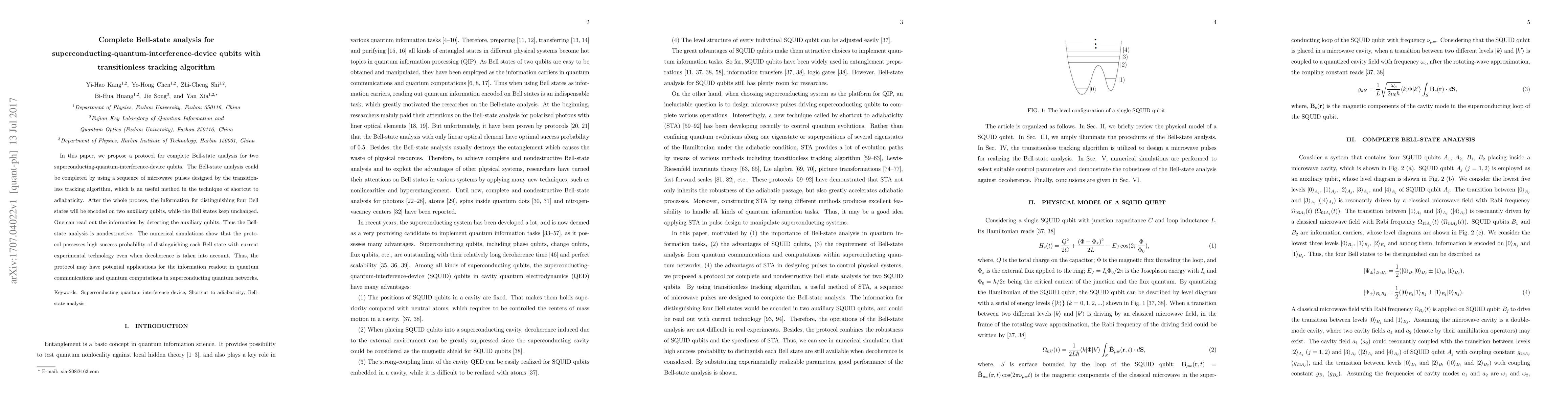 The paper introduces the application of the transitionless tracking algorithm for designing microwave pulses in Bell-state analysis for superconducting qubits.
