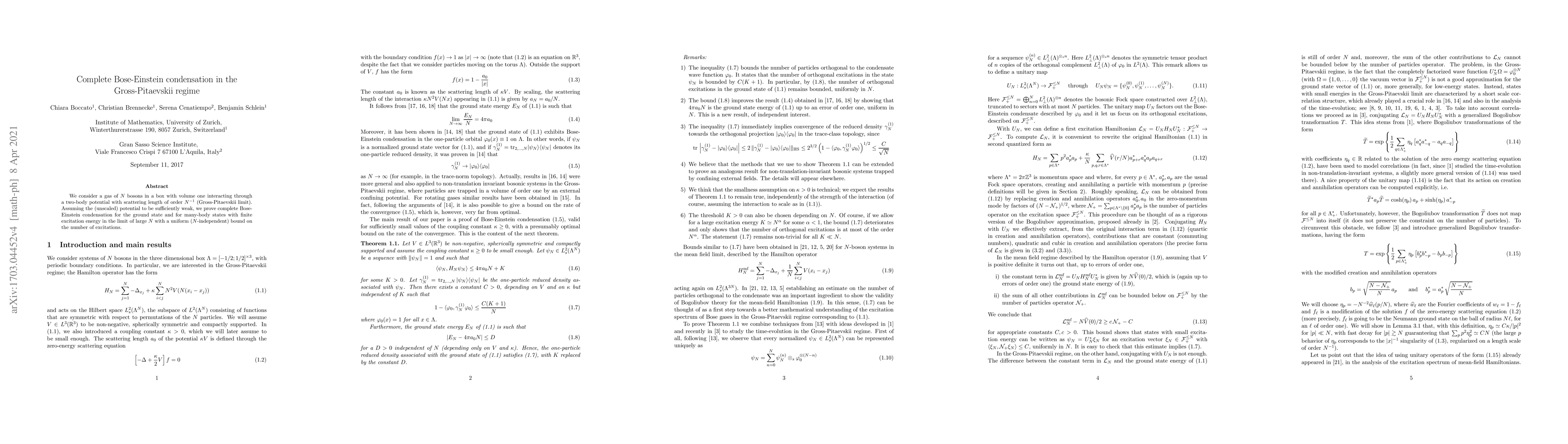 This paper demonstrates that in a gas of bosons interacting under the Gross-Pitaevskii regime, the ground state and low-energy states exhibit complete Bose-Einstein condensation, with a uniform bound on the number of excitations, independent of the number of particles $N$.