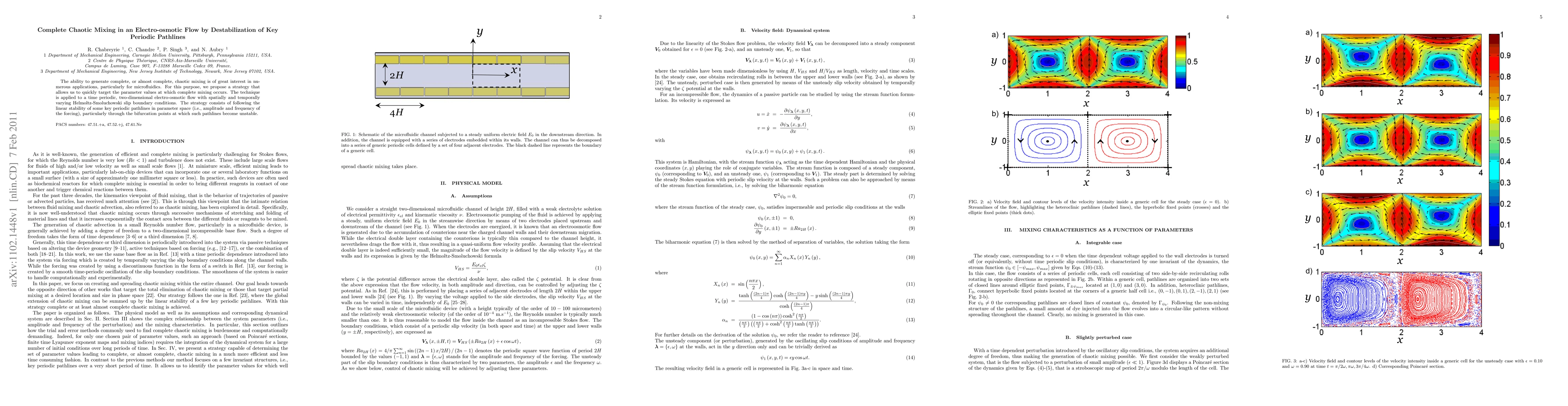 This paper proposes a method to achieve complete chaotic mixing in electro-osmotic flows by destabilizing key periodic pathlines, focusing on bifurcation points in parameter space. The technique is applied to a time-periodic, two-dimensional electro-osmotic flow with varying boundary conditions.