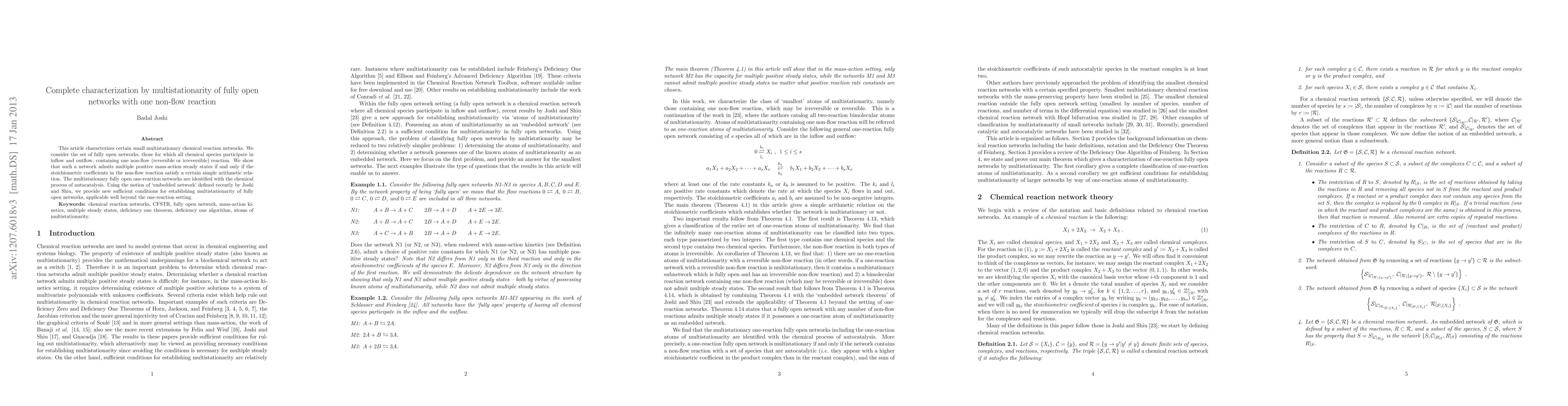 This paper characterizes fully open chemical reaction networks with a single non-flow reaction, proving that multistationarity occurs if the non-flow reaction's stoichiometric coefficients meet a specific arithmetic condition. The study also introduces new sufficient conditions for multistationarity beyond the one-reaction case.