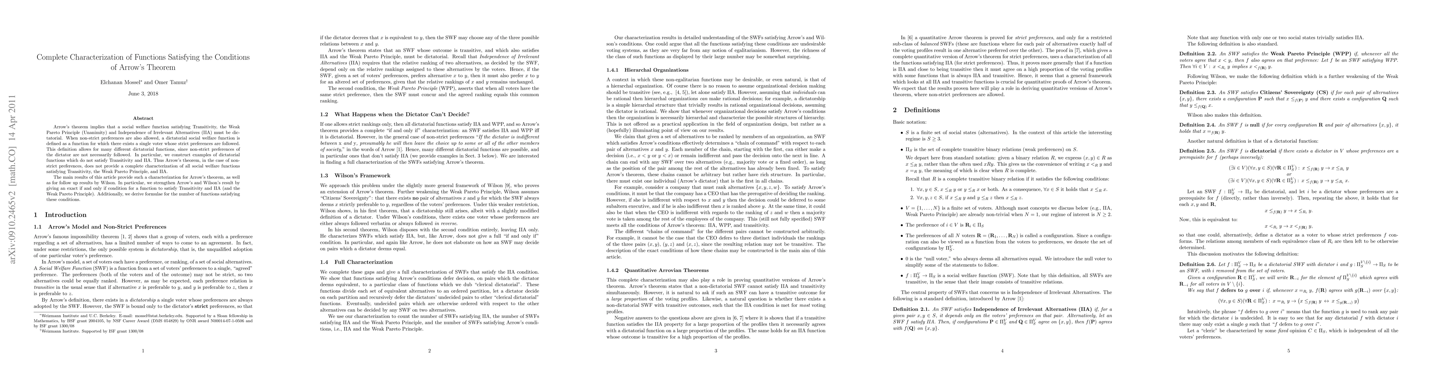 This paper provides a complete characterization of social choice functions satisfying Transitivity, the Pareto Principle, and Independence of Irrelevant Alternatives (IIA), correcting Arrow's theorem's limitations when non-strict preferences are considered. It also offers exact conditions for functions to meet these criteria and calculates the number of such functions.