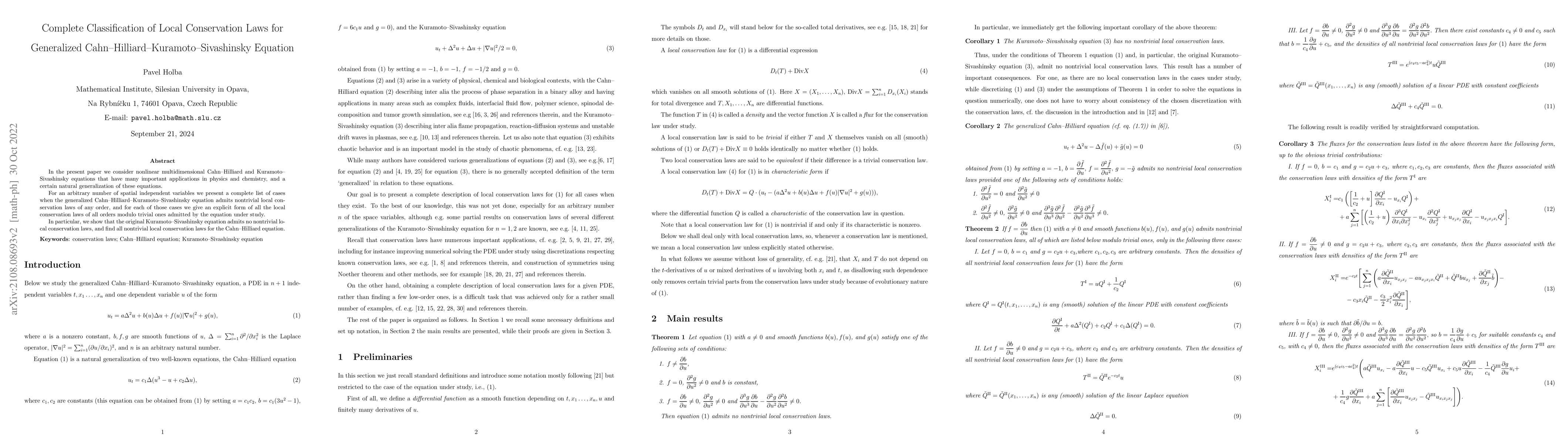In the present paper we consider nonlinear multidimensional Cahn-Hilliard and Kuramoto-Sivashinsky equations that have many important applications in physics and chemistry, and a certain natural generalization of these equations. For an arbitrary number of spatial independent variables we present a complete list of cases when the generalized Cahn-Hilliard-Kuramoto-Sivashinsky equation admits nontrivial local conservation laws of any order, and for each of those cases we give an explicit form of all the local conservation laws of all orders modulo trivial ones admitted by the equation under study. In particular, we show that the original Kuramoto-Sivashinsky equation admits no nontrivial local conservation laws, and find all nontrivial local conservation laws for the Cahn-Hilliard equation.