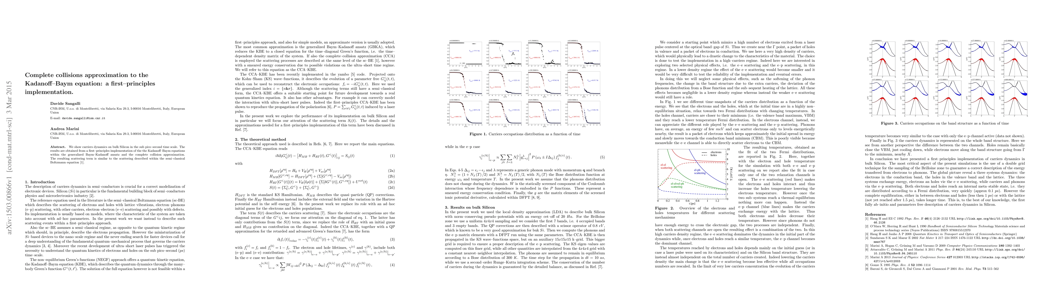 We show carriers dynamics on bulk Silicon in the sub pico-second time scale. The results are obtained from a first-principles implementation of the the Kadanoff-Baym equations within the generalized Baym-Kadanoff ansatz and the complete collision approximation. The resulting scattering term is similar to the scattering described within the semi-classical Boltzmann equation.
