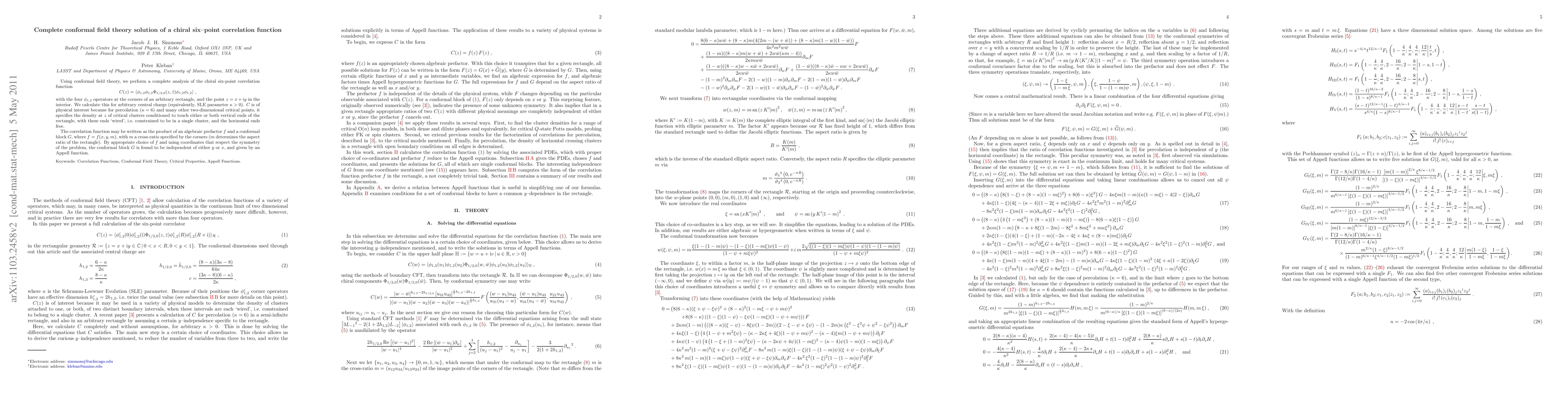 Using conformal field theory, we perform a complete analysis of the chiral six-point correlation function C(z)=< \phi_{1,2}\phi_{1,2} \Phi_{1/2,0}(z, \bar z) \phi_{1,2}\phi_{1,2} >, with the four \phi_{1,2} operators at the corners of an arbitrary rectangle, and the point z = x+iy in the interior. We calculate this for arbitrary central charge (equivalently, SLE parameter \kappa > 0). C is of physical interest because percolation (\kappa = 6) and many other two-dimensional critical points, it specifies the density at z of critical clusters conditioned to touch either or both vertical ends of the rectangle, with these ends `wired', i.e. constrained to be in a single cluster, and the horizontal ends free. The correlation function may be written as the product of an algebraic prefactor f and a conformal block G, where f = f(x,y,m), with m a cross-ratio specified by the corners (m determines the aspect ratio of the rectangle). By appropriate choice of f and using coordinates that respect the symmetry of the problem, the conformal block G is found to be independent of either y or x, and given by an Appell function.
