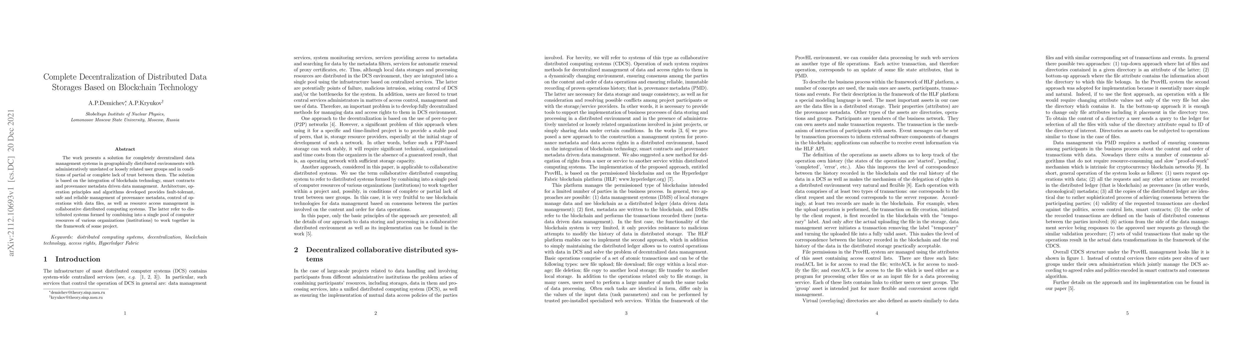 Researchers propose a decentralized data storage system using blockchain technology to manage provenance metadata and ensure trust in geographically distributed environments with diverse user groups.