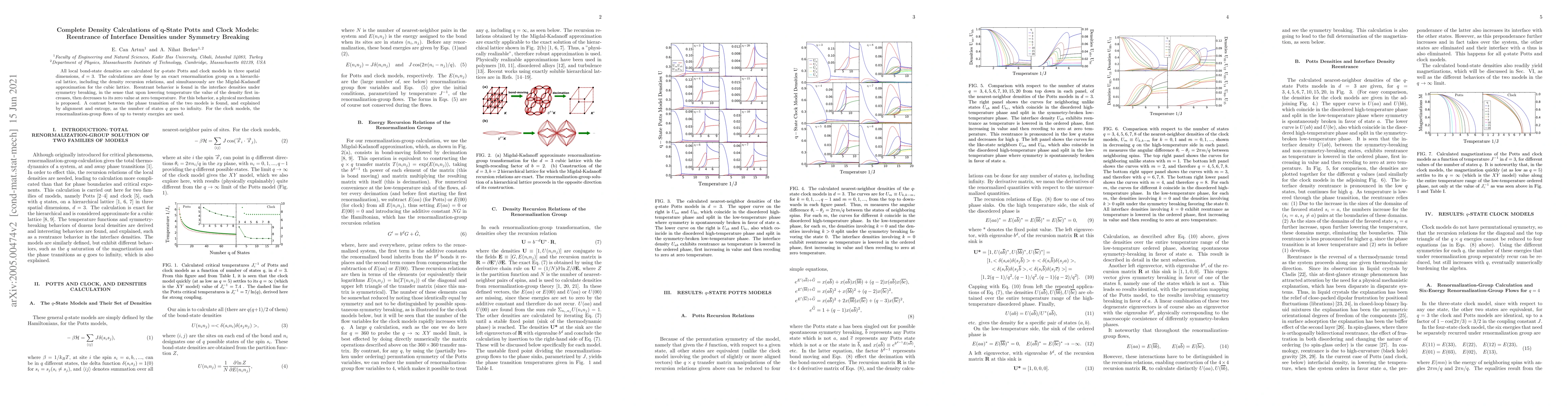 Researchers calculated interface densities for 2D Potts and clock models in 3D, finding reentrance under symmetry breaking where density increases then decreases with temperature, and proposing a physical mechanism.