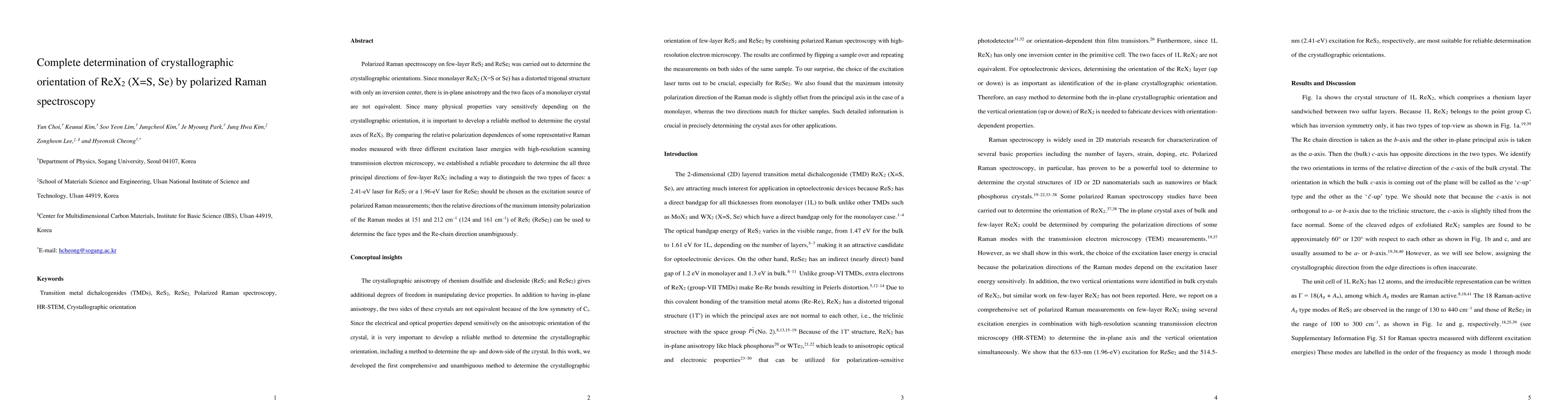 This study uses polarized Raman spectroscopy to determine the crystallographic orientations of few-layer ReS2 and ReSe2. By employing specific laser excitation energies and analyzing Raman mode polarization dependences, a reliable method is established to identify the principal crystallographic directions and distinguish between the two types of faces in ReX2 monolayers.