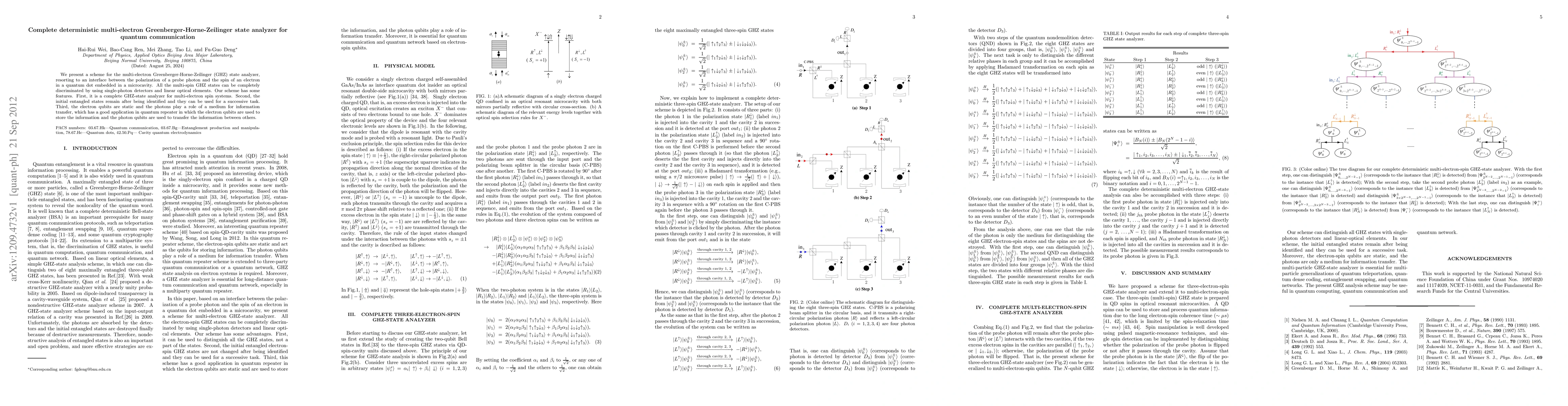 This paper proposes a deterministic scheme for analyzing multi-electron Greenberger-Horne-Zeilinger (GHZ) states using a probe photon's polarization interfaced with electron spins in quantum dots. The method allows complete discrimination of all multi-spin GHZ states while preserving the initial entangled states for subsequent use.