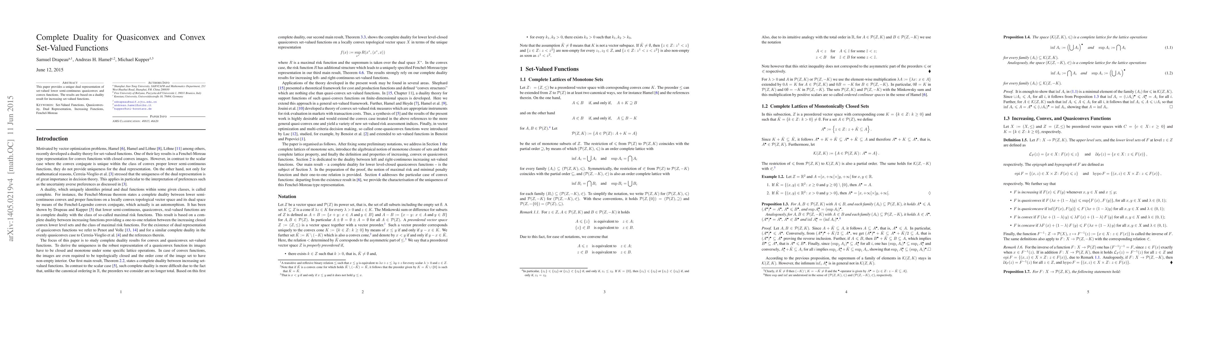 This paper presents a novel dual representation of set-valued lower semi-continuous quasiconvex and convex functions, grounded in a duality result for increasing set-valued functions. The findings advance the understanding of duality in quasiconvex and convex analysis.