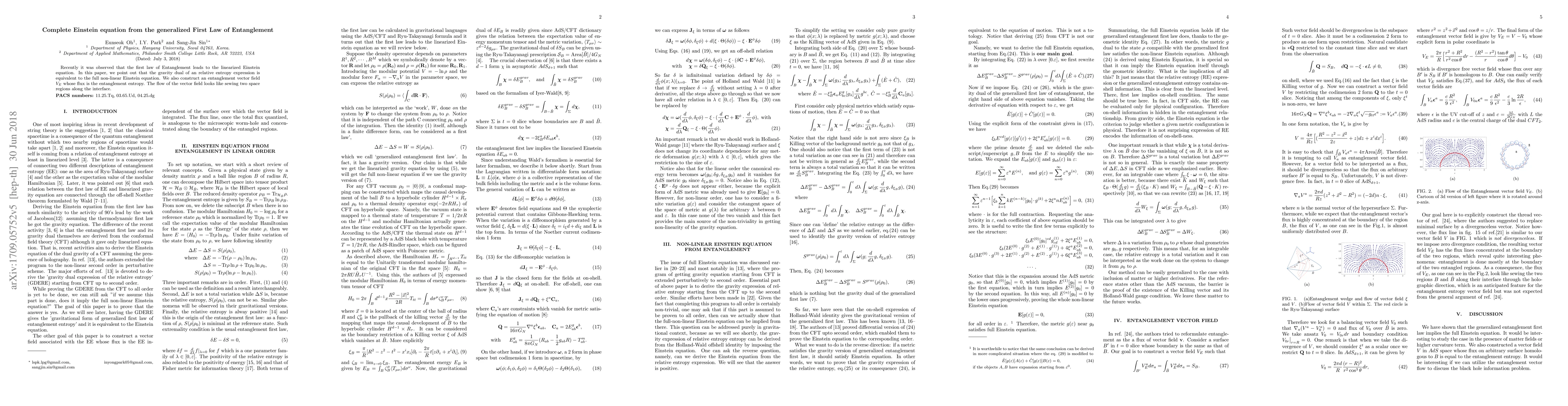 Recently it was observed that the first law of Entanglement leads to the linearized Einstein equation. In this paper, we point out that the gravity dual of an relative entropy expression is equivalent to the full non-linear Einstein equation. We also construct an entanglement vector field $V_{E}$ whose flux is the entanglement entropy. The flow of the vector field looks like sewing two space regions along the interface.
