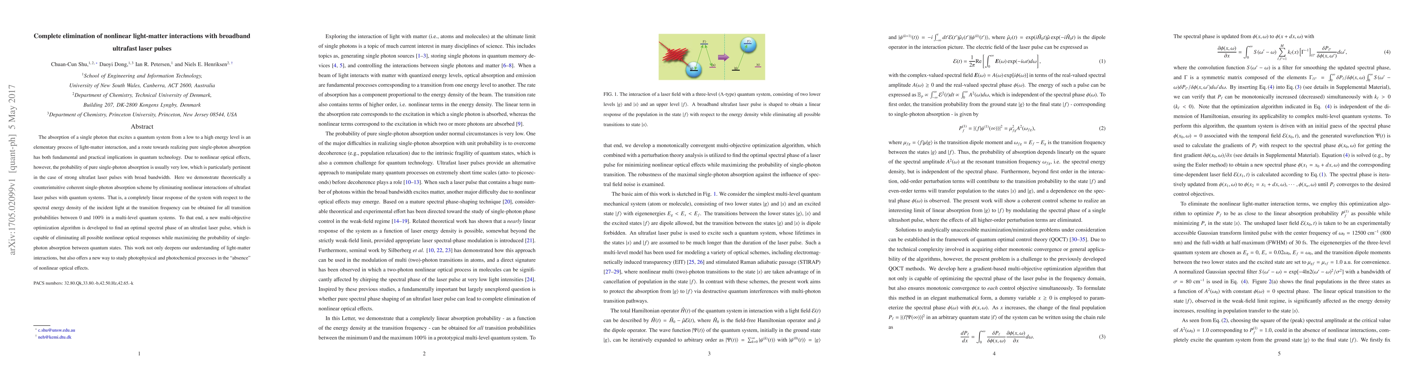 This paper presents a theoretical method to achieve complete elimination of nonlinear light-matter interactions using broadband ultrafast laser pulses, enabling pure single-photon absorption. A novel multi-objective optimization algorithm is developed to optimize the spectral phase of the laser pulse, ensuring a linear response in quantum systems across all transition probabilities.