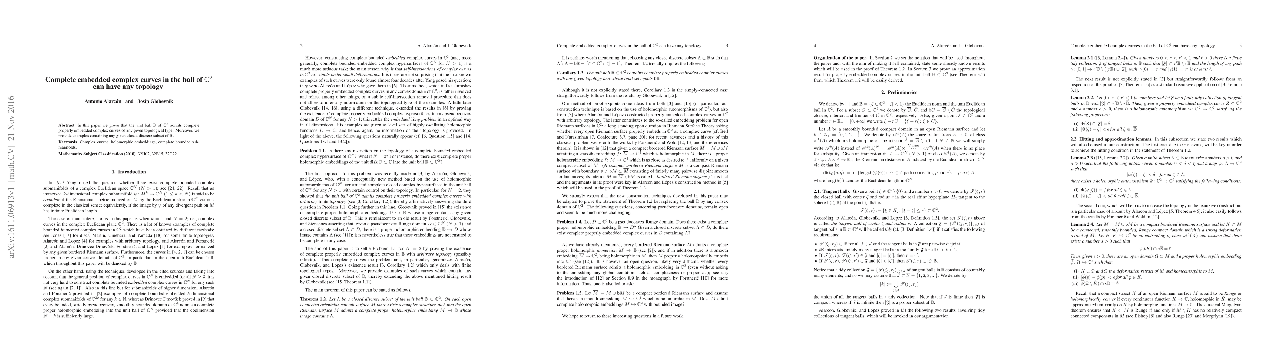 Summary: This paper demonstrates that the unit ball in $\mathbb{C}^2$ can host complete embedded complex curves of any topological type, including those with specified closed discrete subsets. The findings highlight the flexibility in the topology of such curves within this complex space.